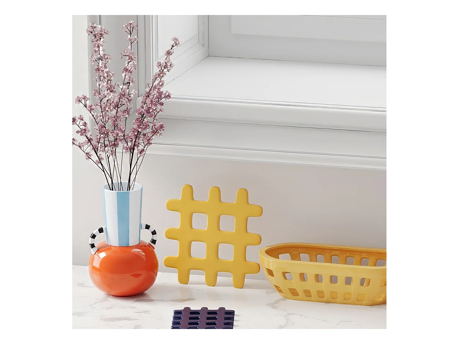 ORLANDO PETIT - Petit vase cylindrique à rayures jaunes