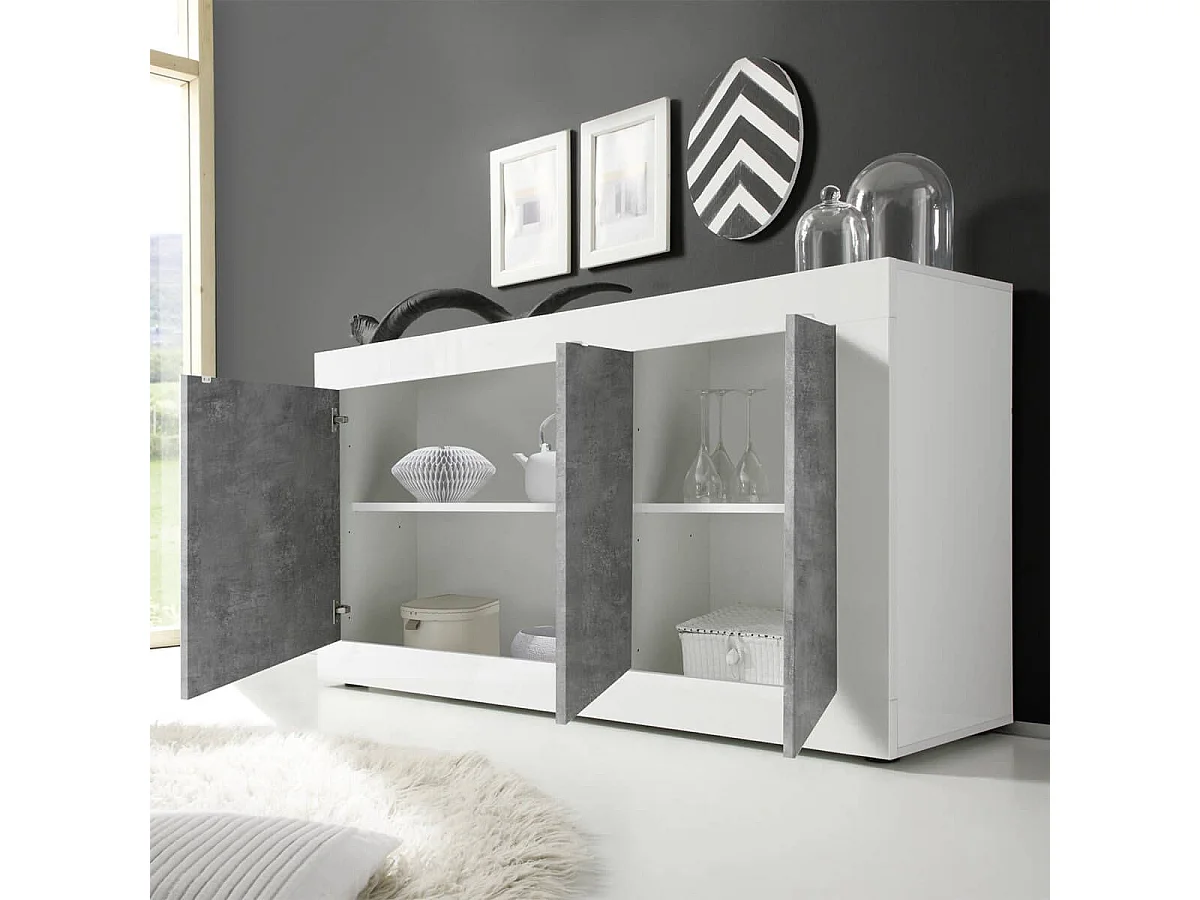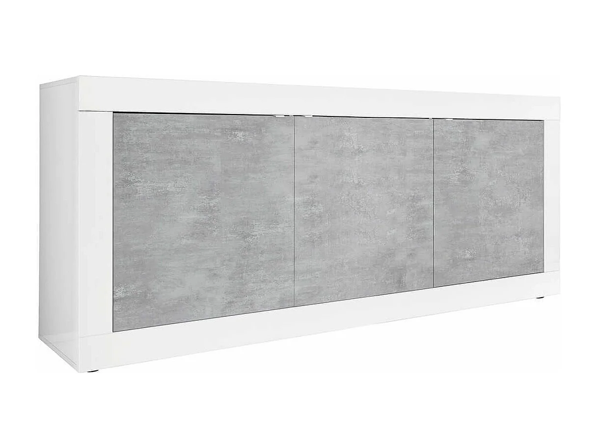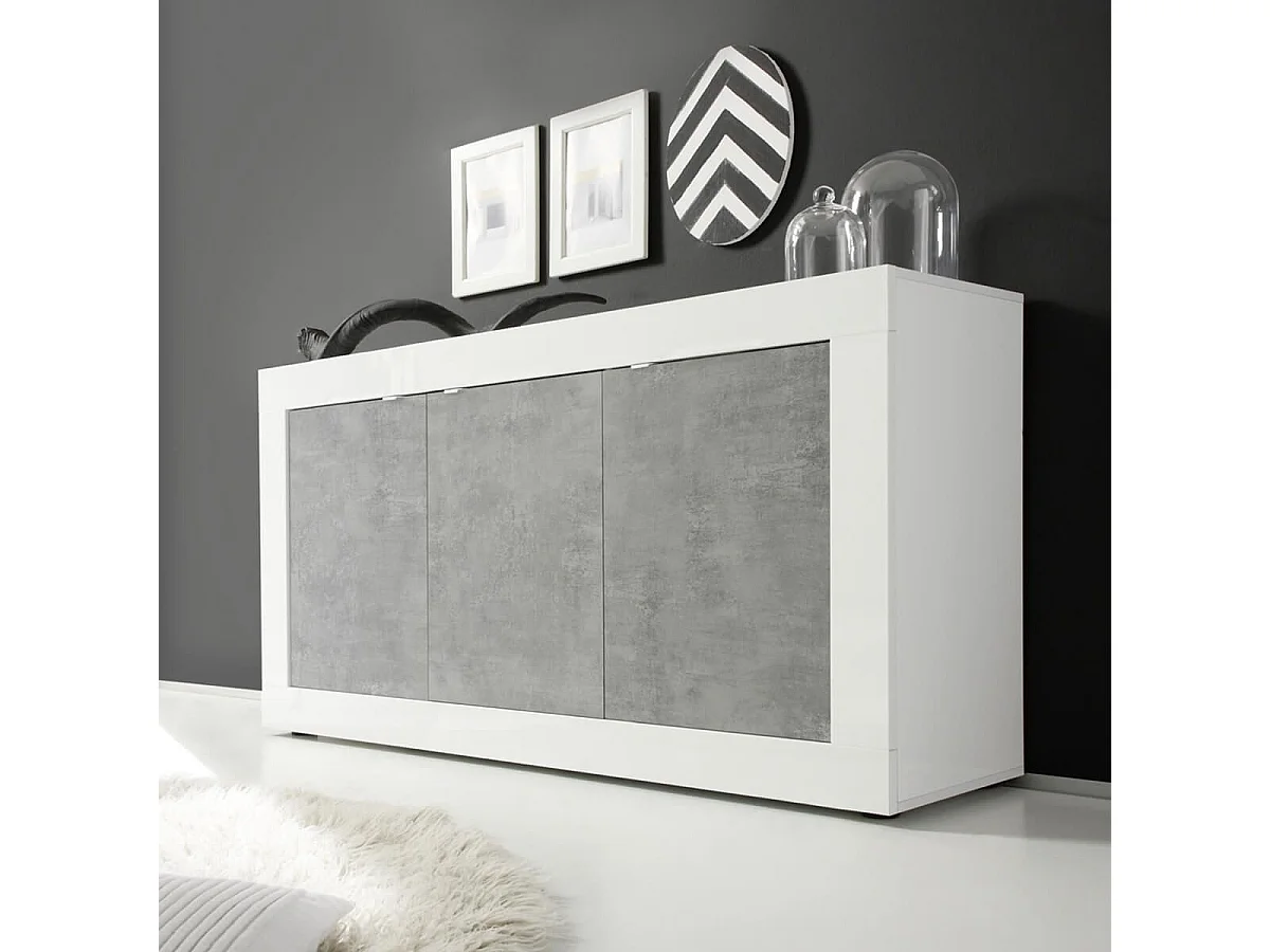 OTELLO - Buffet 3 Portes Finition Blanc Laqué et Aspect Béton