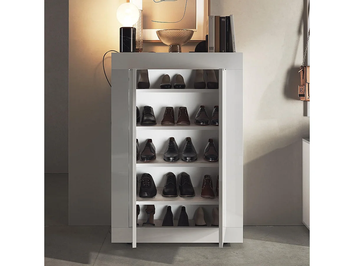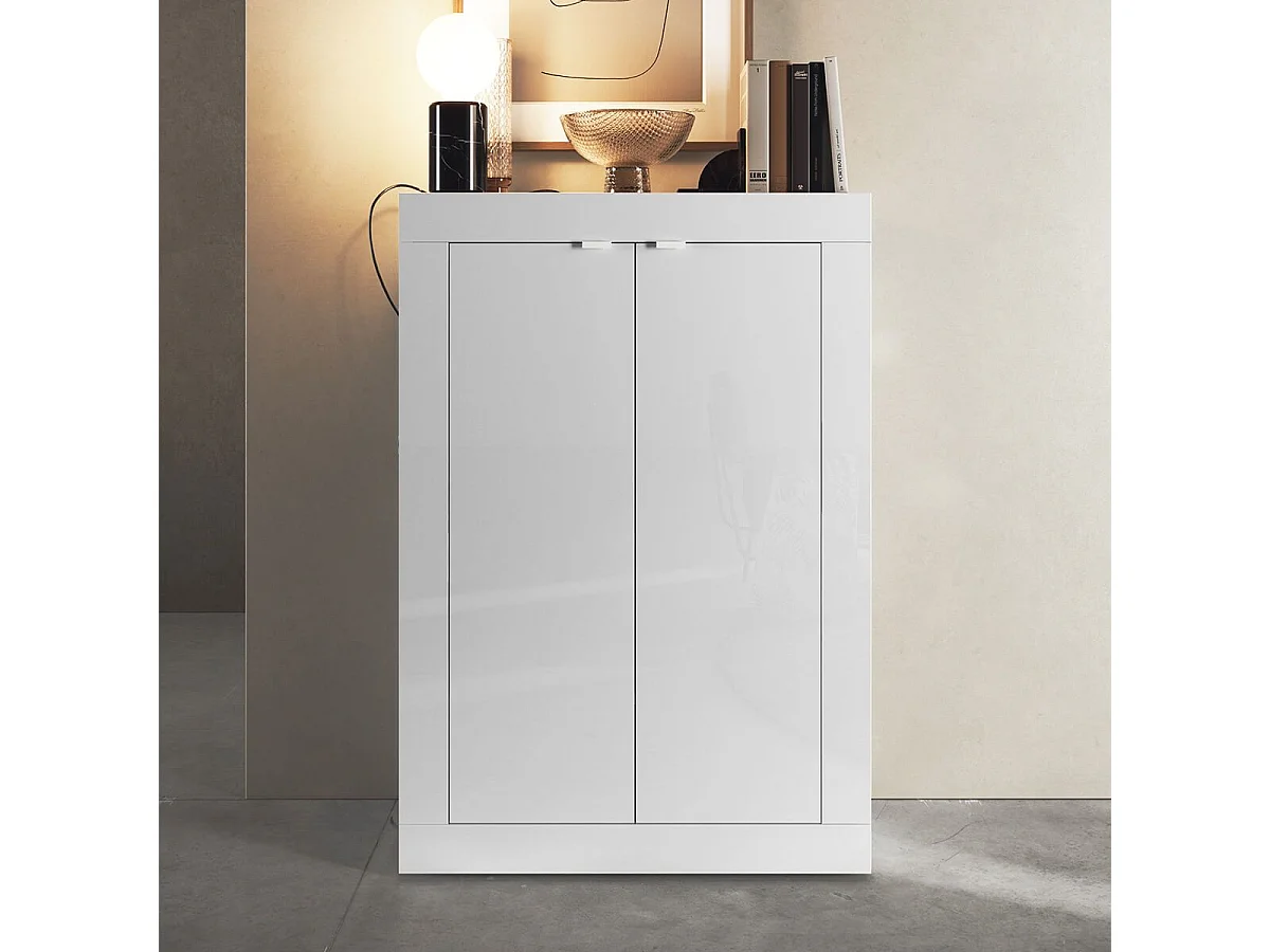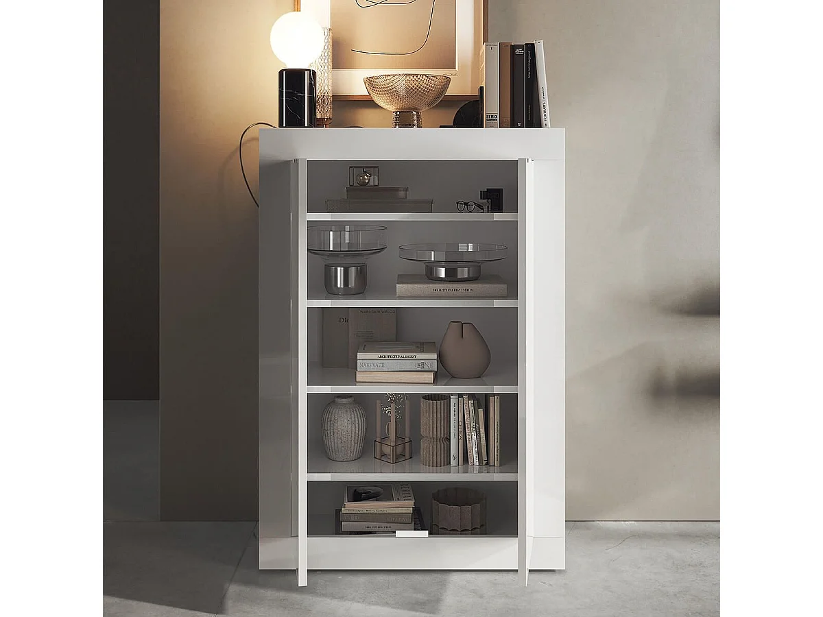 OTELLO - Meuble d'entrée 2 portes 4 étagères Blanc Laqué Weiss