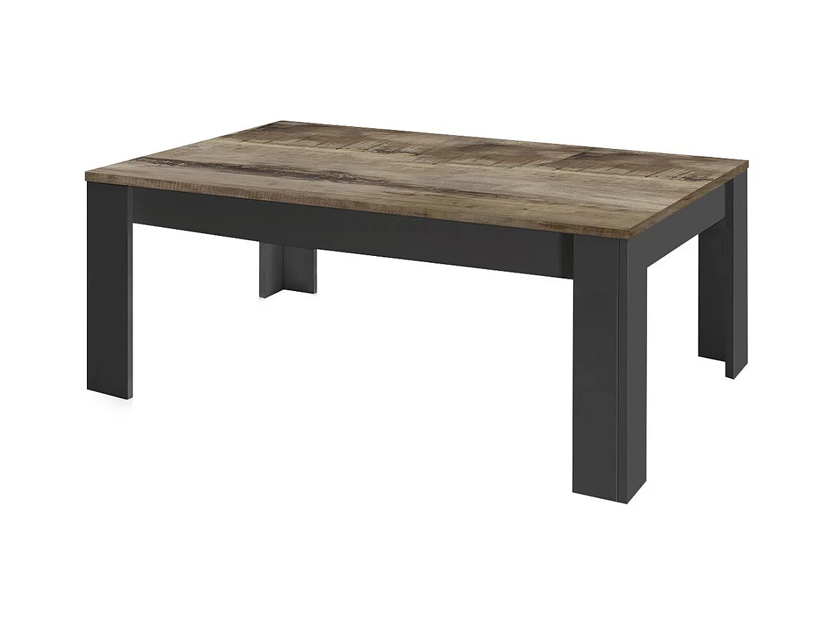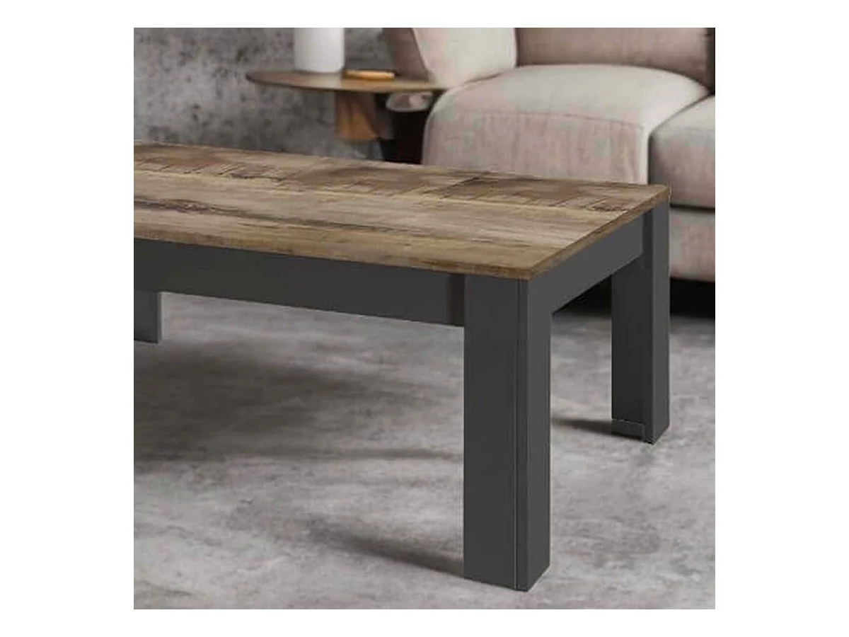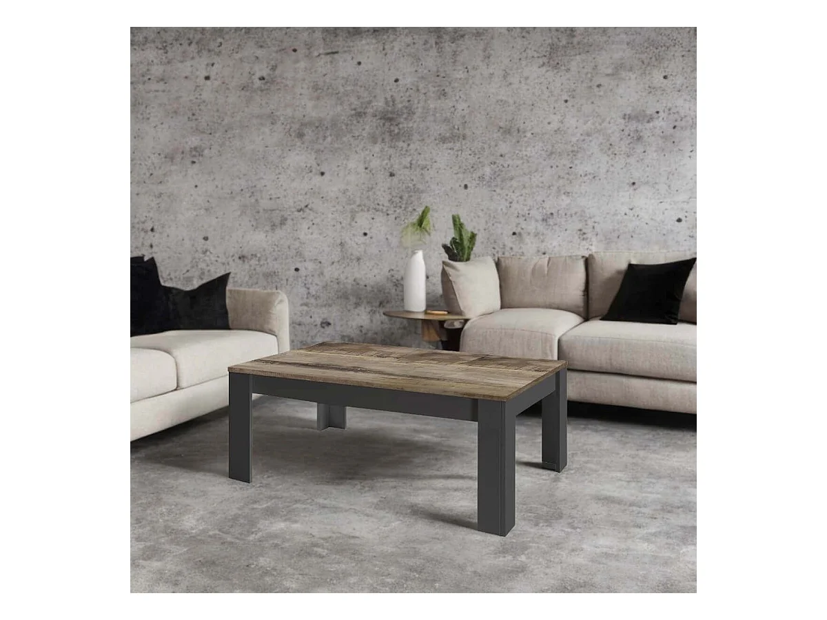 OTELLO - Table Basse Rectangulaire Noir Mat Plateau Aspect Bois Antik