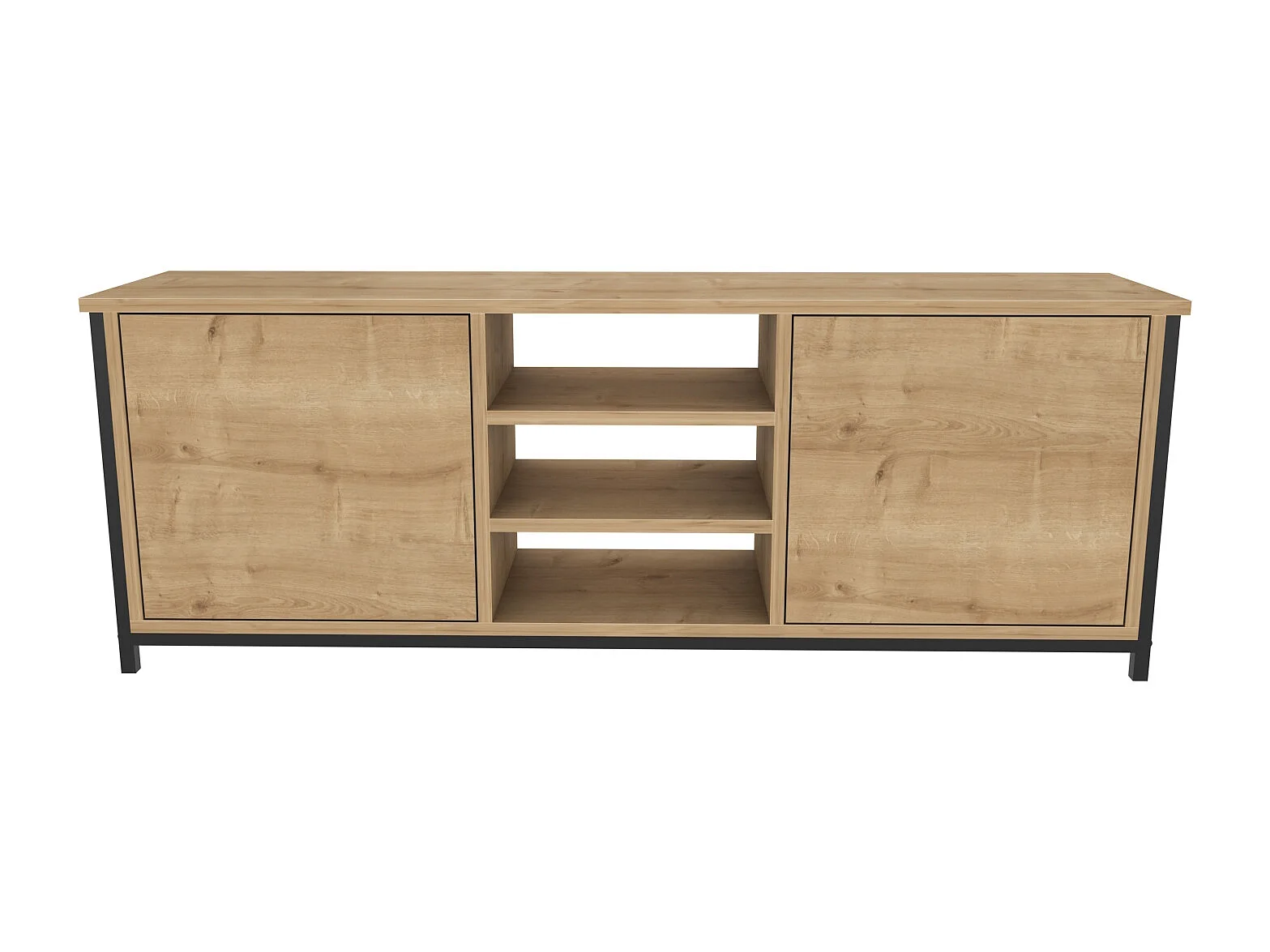 Otis Meuble TV 140 cm Placards et Étagères Ouvertes (Noir et Chêne)
