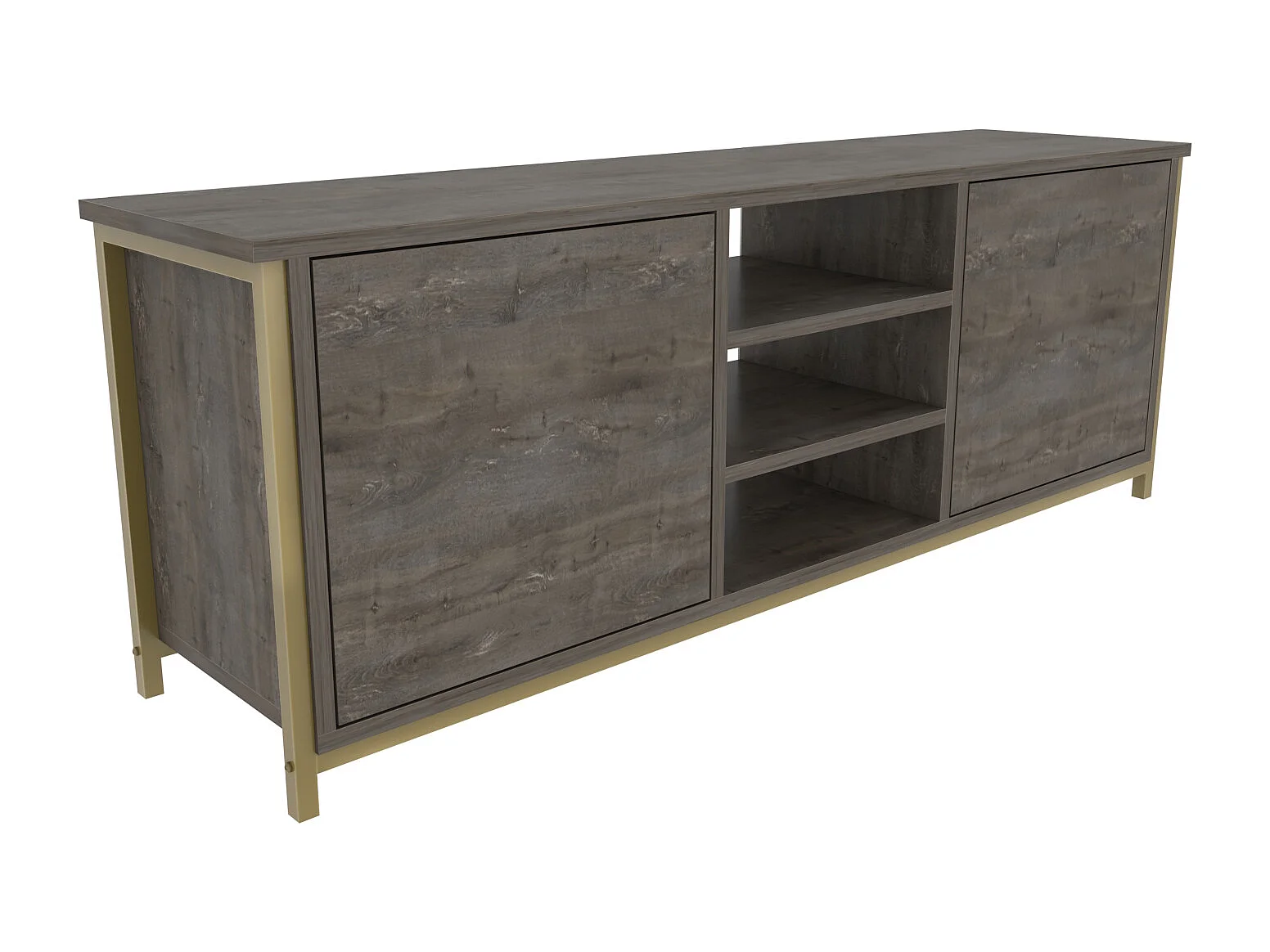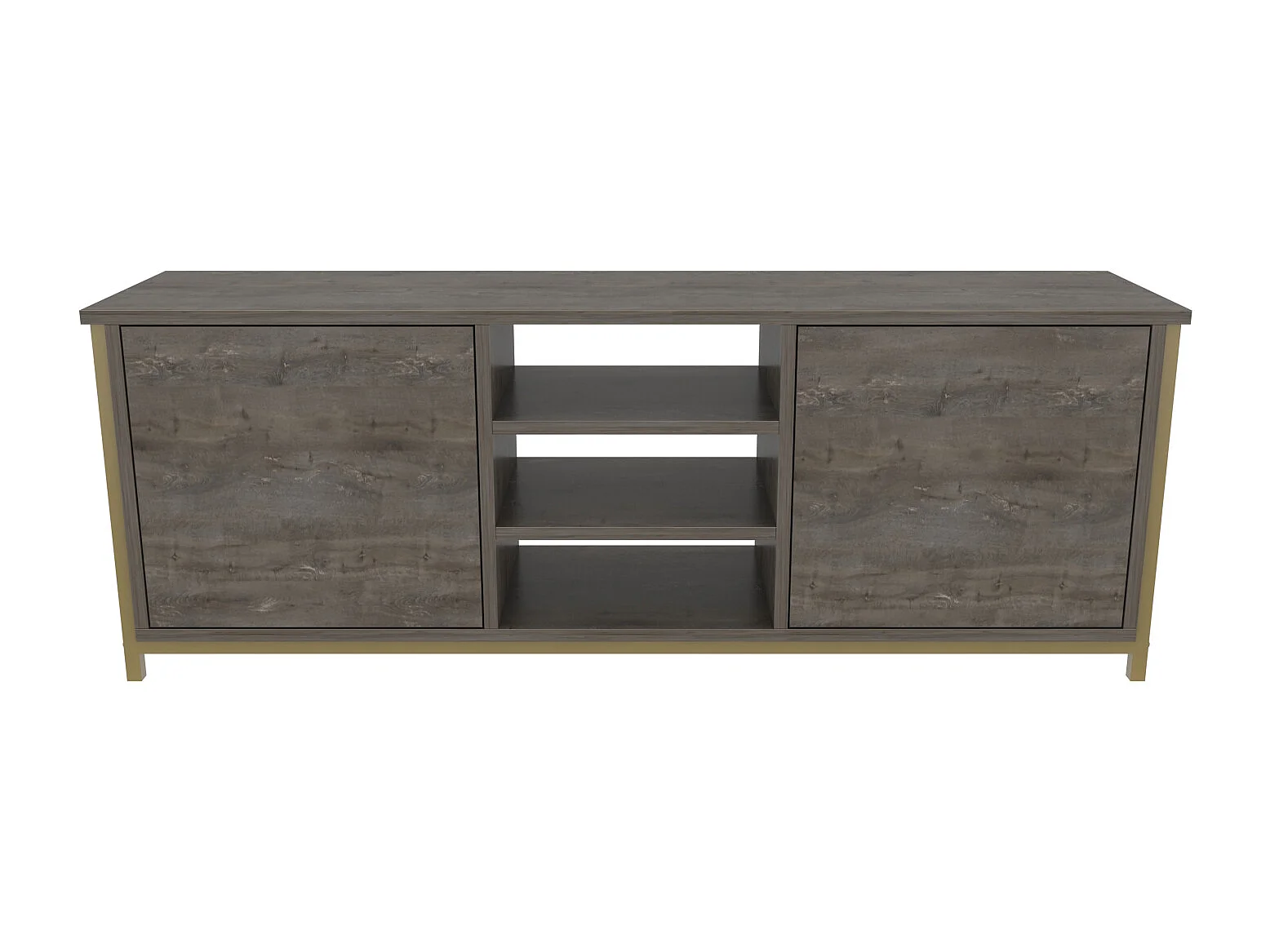 Otis Meuble TV 140 cm Placards et Étagères Ouvertes (Wenge et Doré)