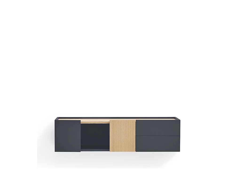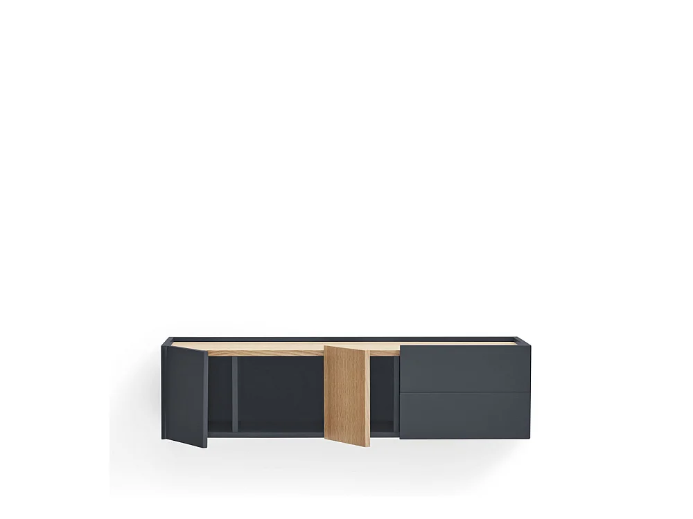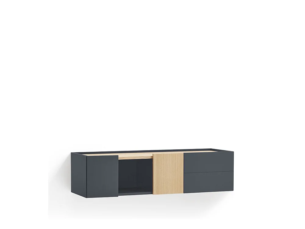 Otto - Console murale 2 portes, 2 tiroirs en bois L110cm - Couleur : Gris anthracite