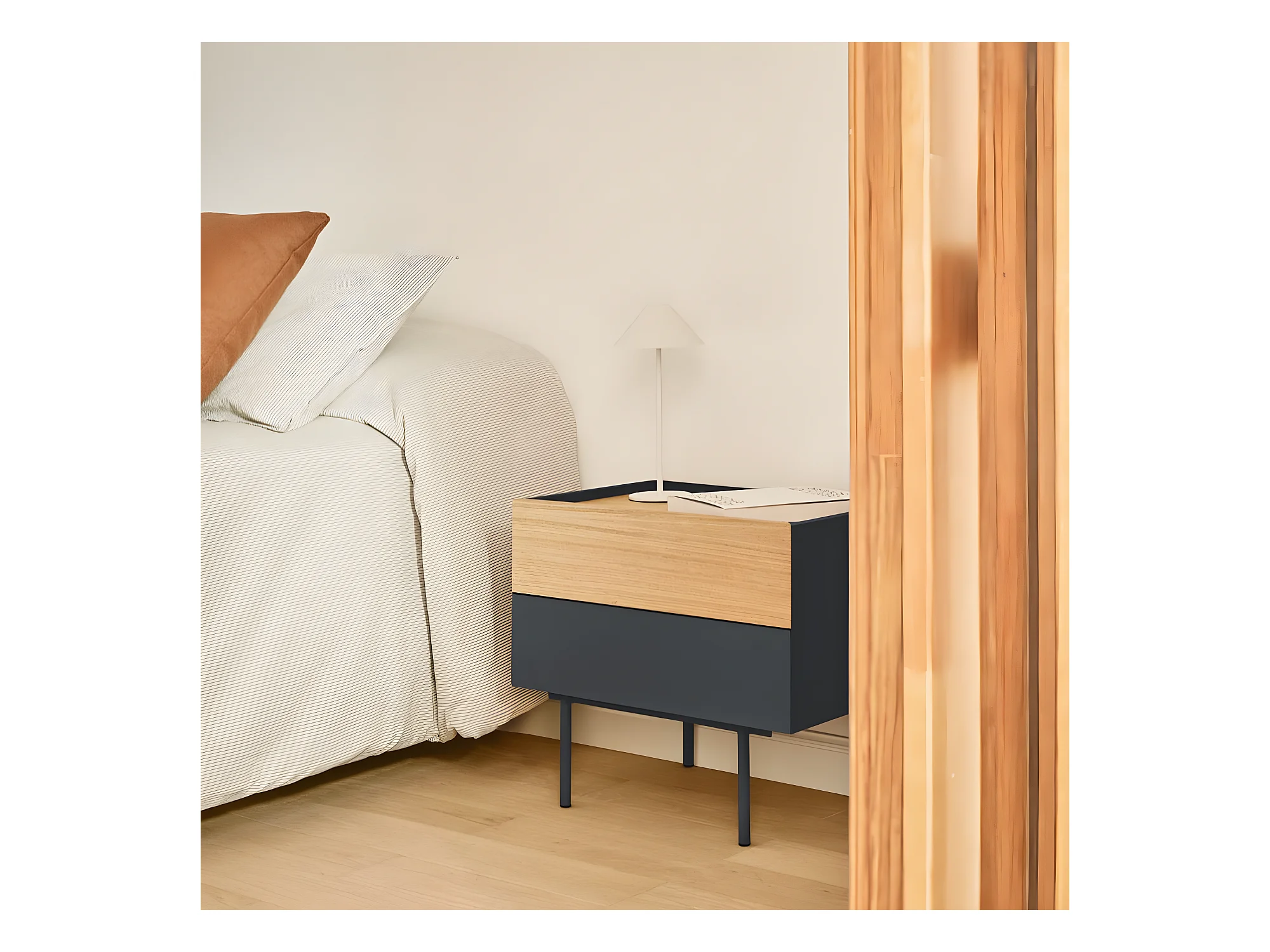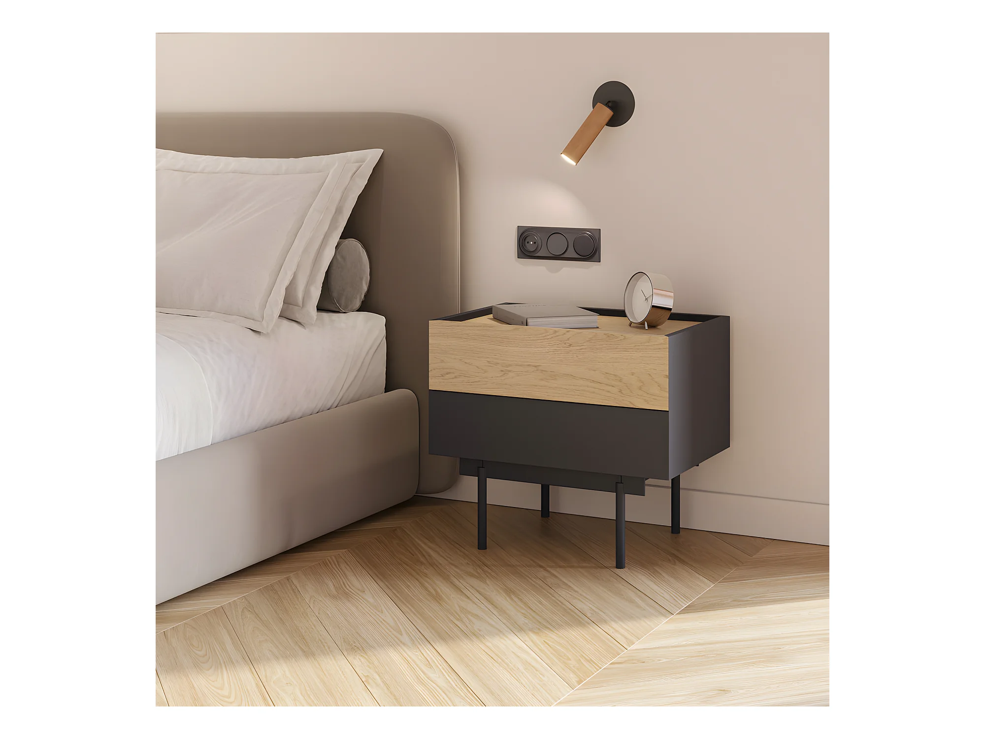 Otto - Table de chevet 2 tiroirs en bois - Gris anthracite