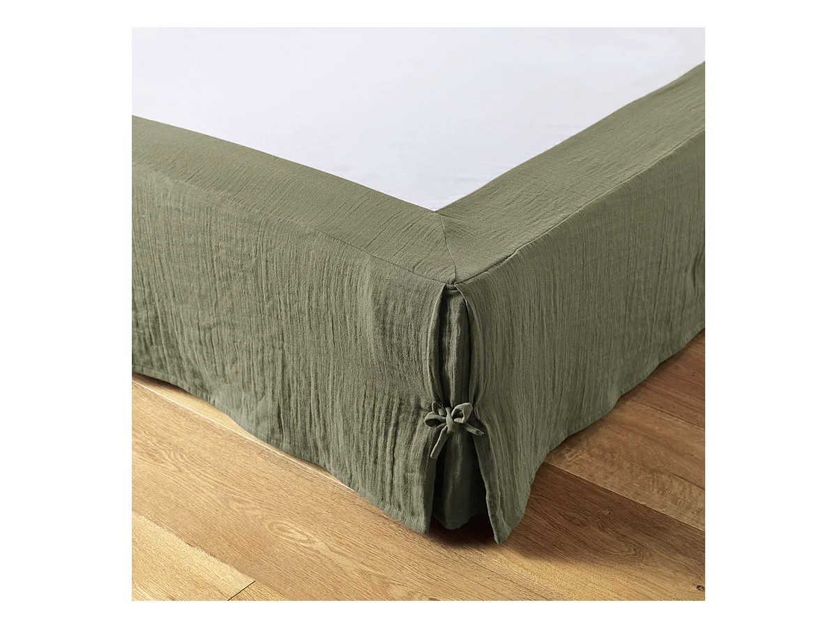 Cache sommier double gaze de coton kaki 90x190 cm