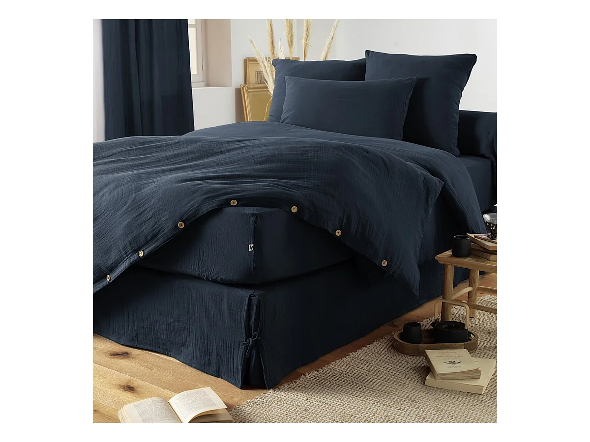 OUREA - Cache-Sommier à Nouettes 180x200cm Gaze de Coton Minuit