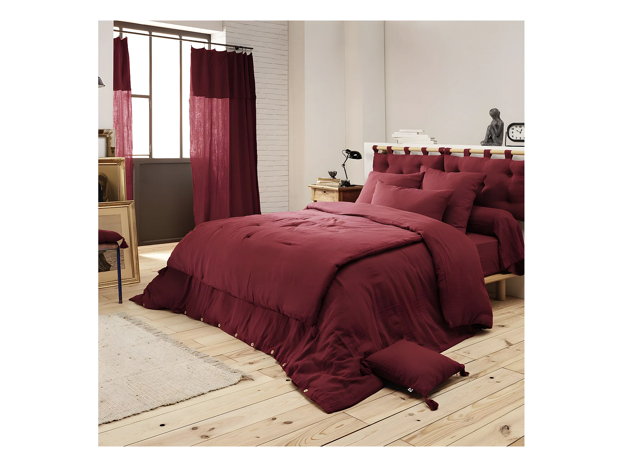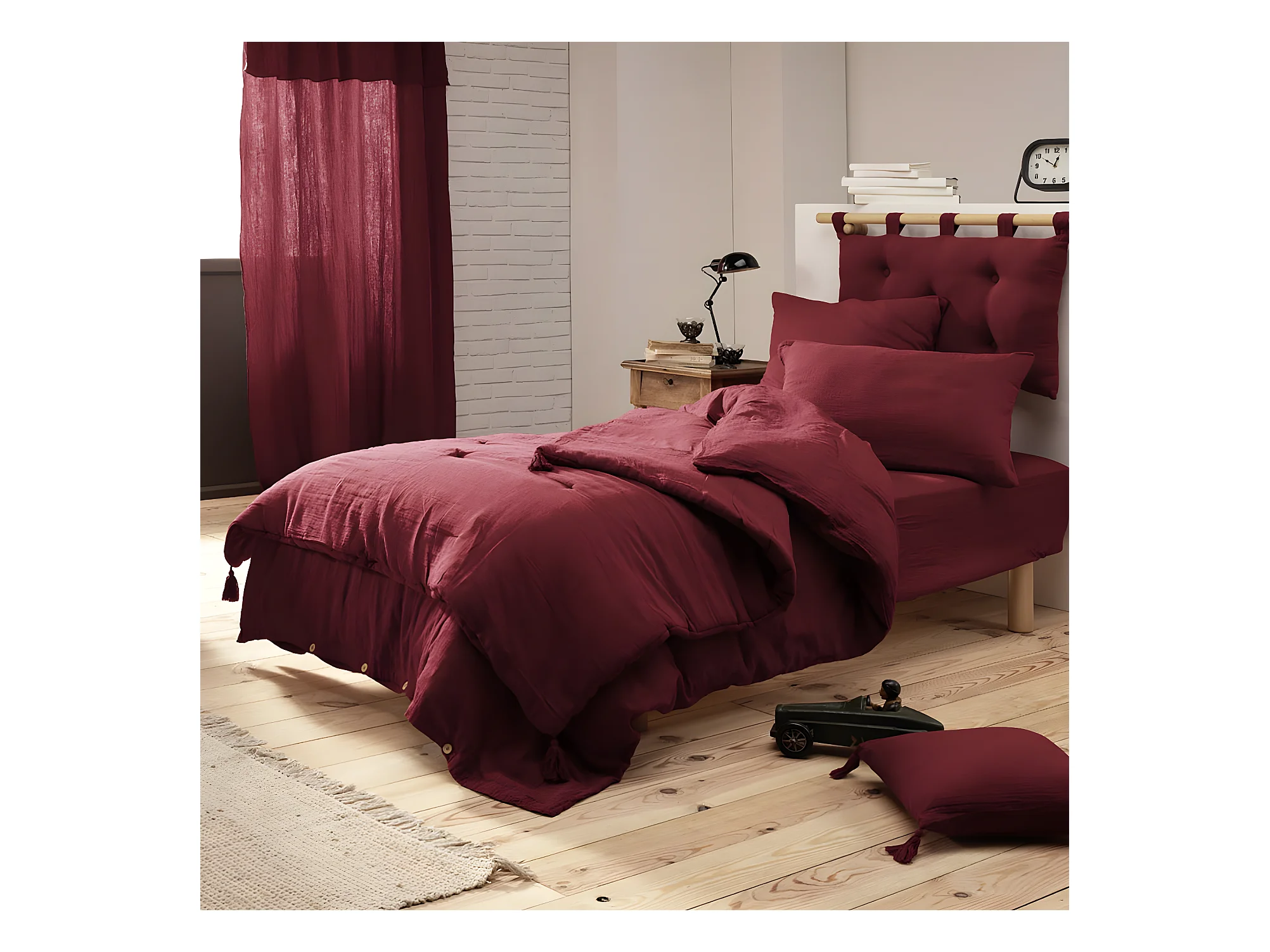 OUREA - Coussin de Tête de Lit avec Passants 50x80cm Gaze de Coton Lie de Vin