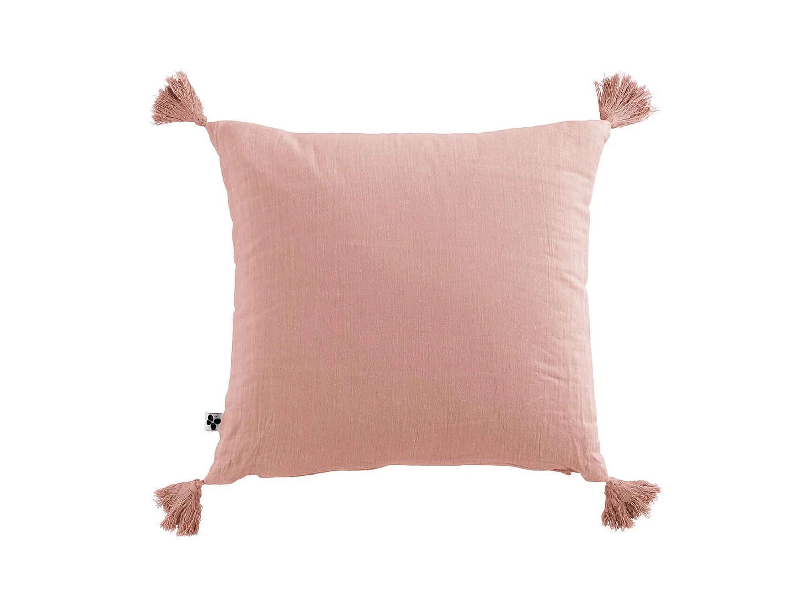 OUREA - Coussin Déhoussable 40x40cm avec Pompons Gaze de Coton Rose Pêche