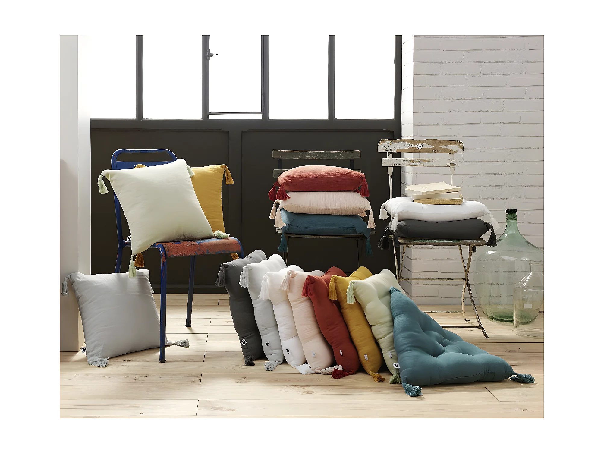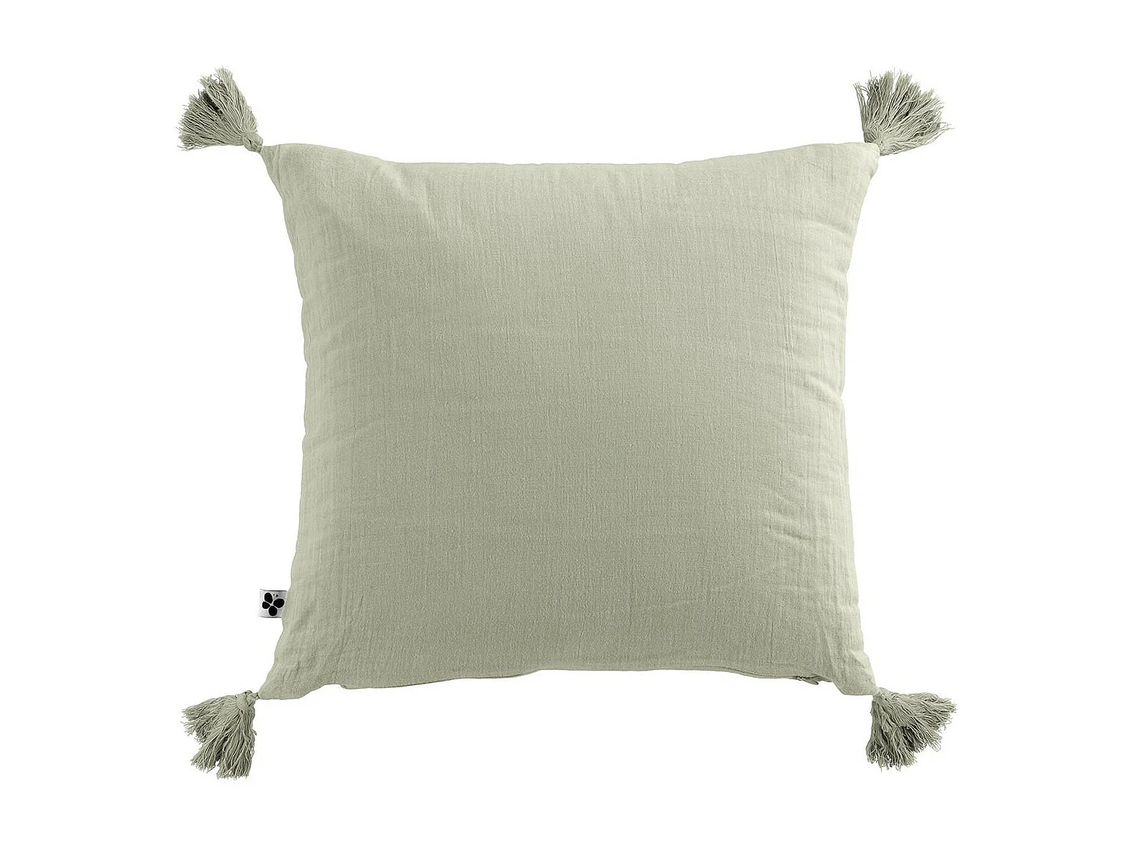 OUREA - Coussin Déhoussable 40x40cm avec Pompons Gaze de Coton Vert d'Eau