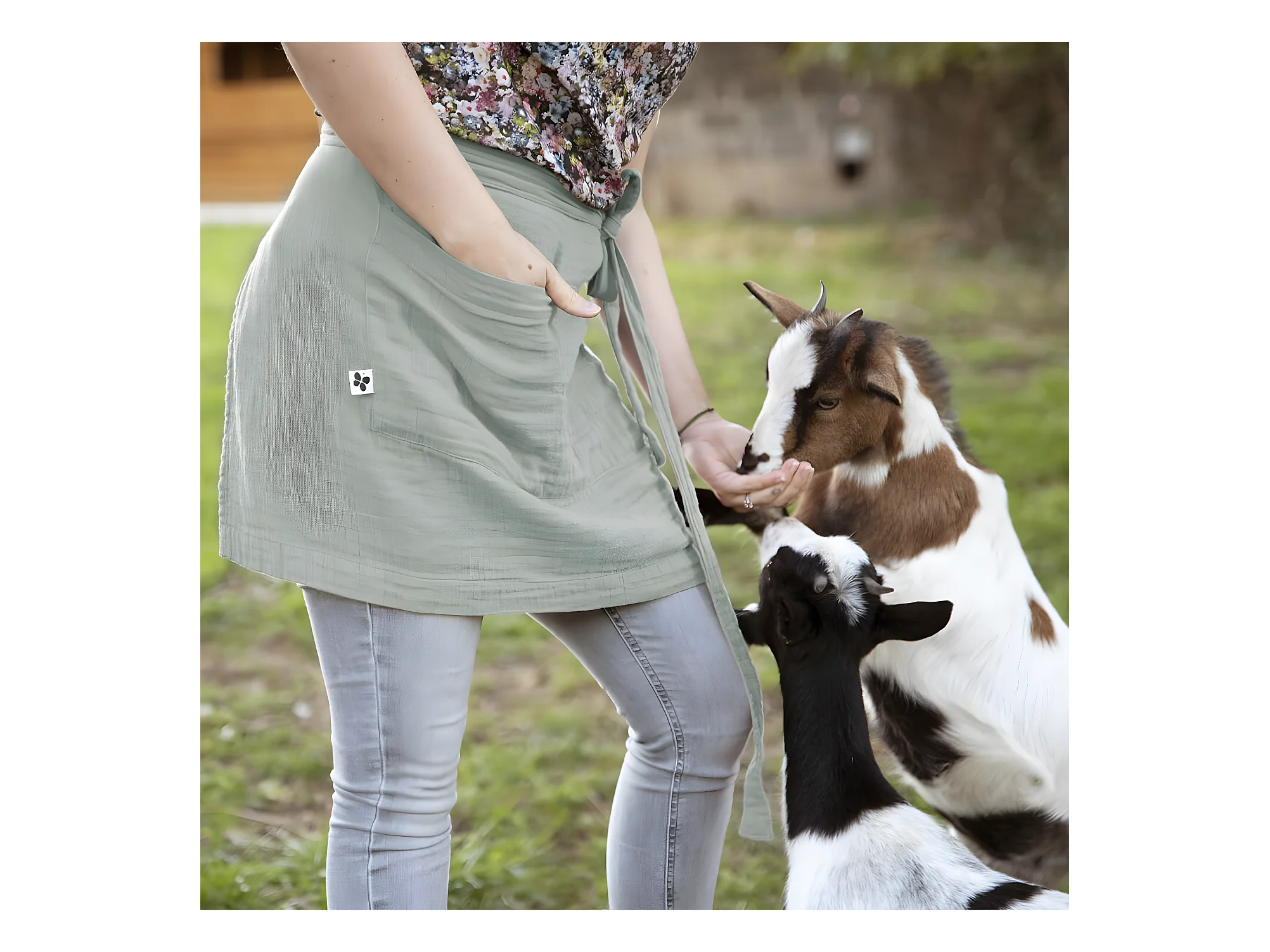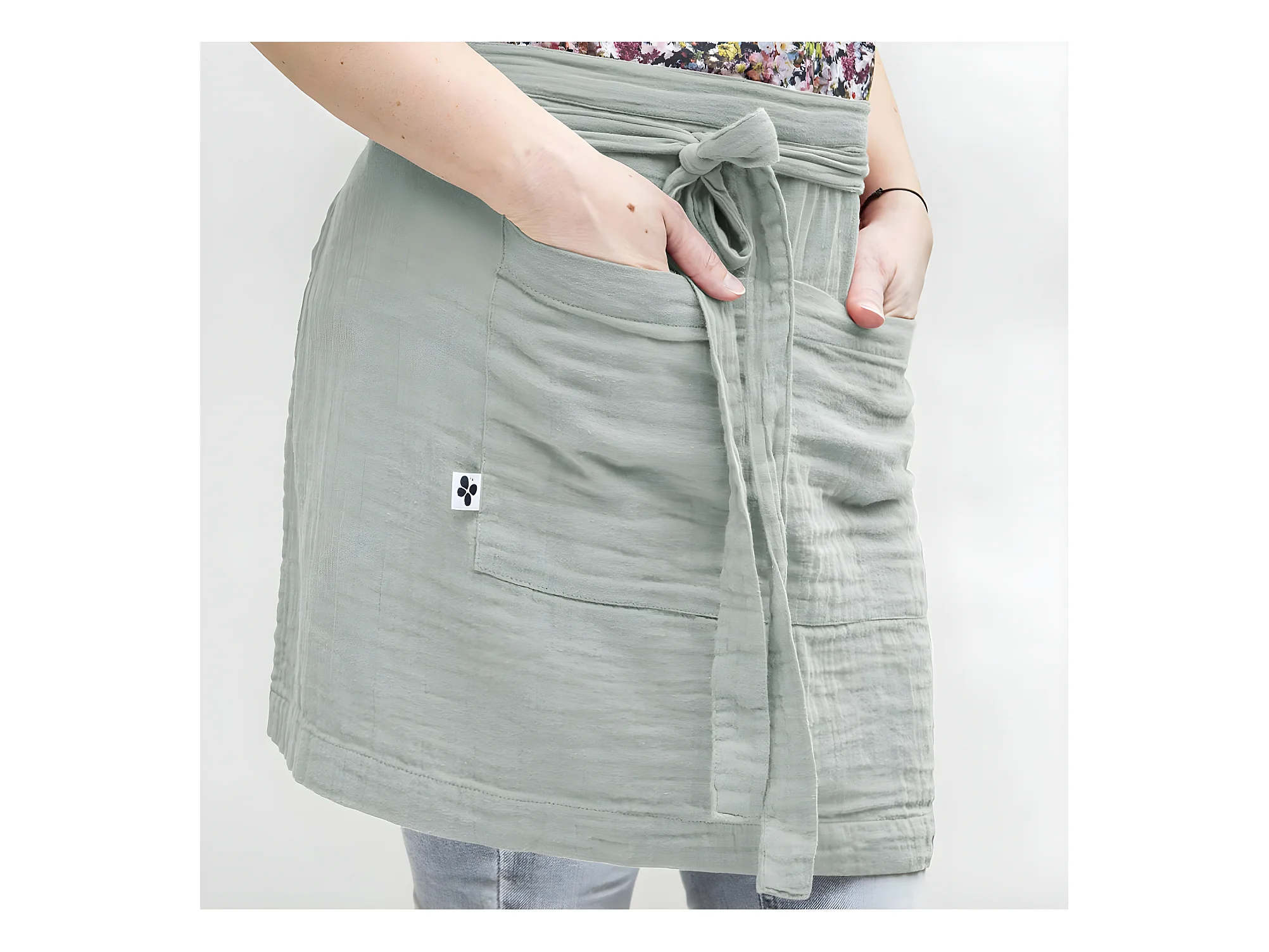 OUREA - Demi-Tablier avec Double Poche Gaze de Coton Eucalyptus