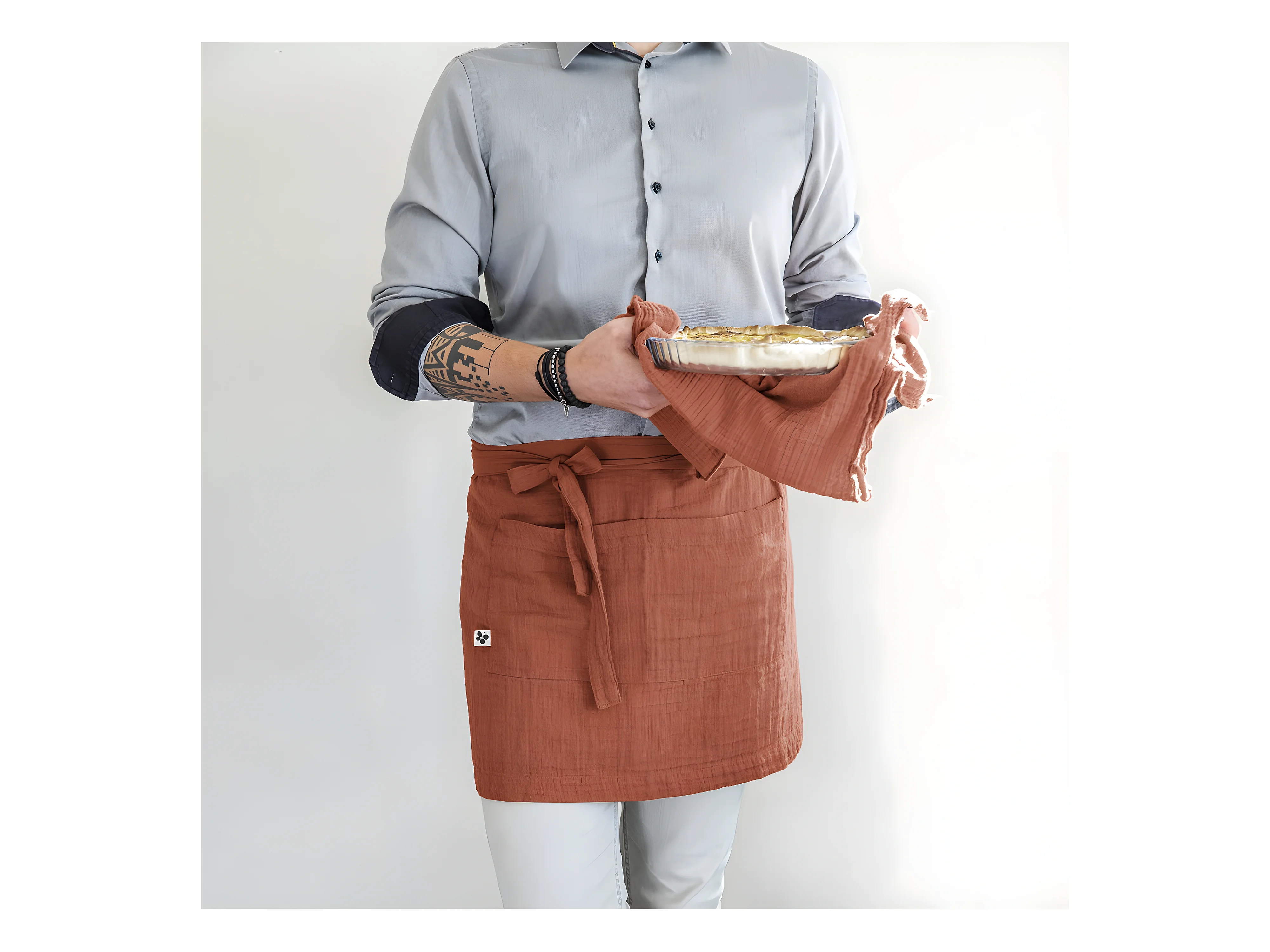 OUREA - Demi-Tablier avec Double Poche Gaze de Coton Terracotta