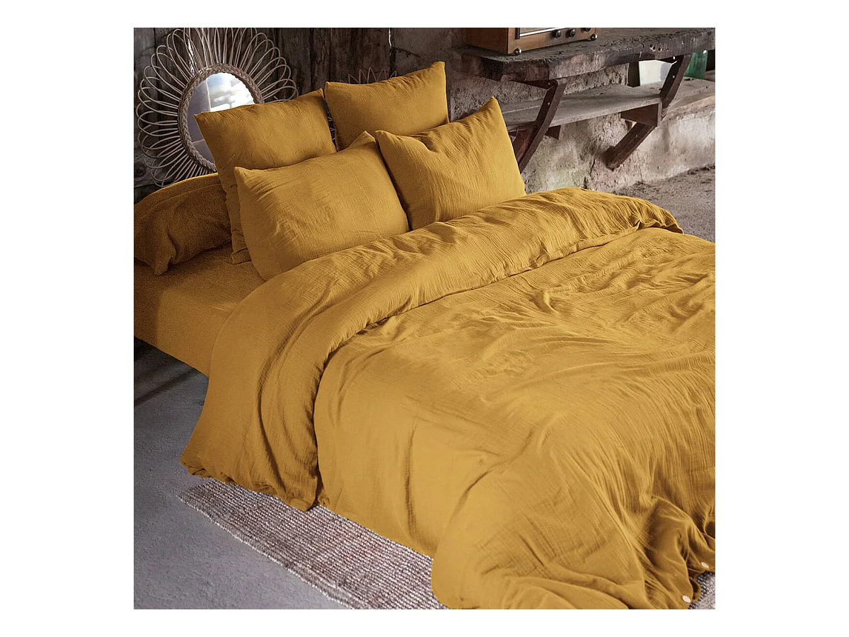 OUREA - Drap Housse 180x200cm Gaze de Coton Safran