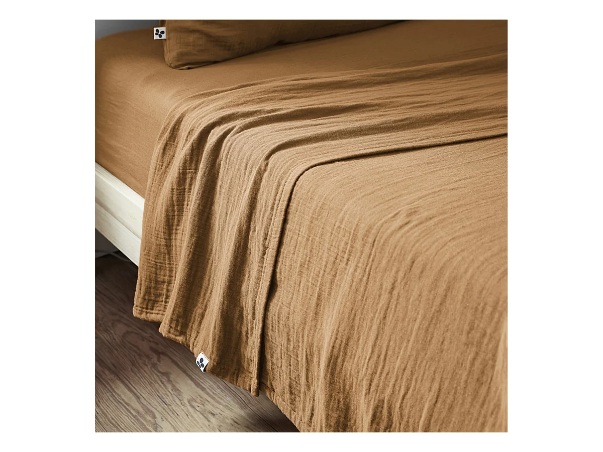 OUREA - Drap Plat 270x300cm Gaze de Coton Camel