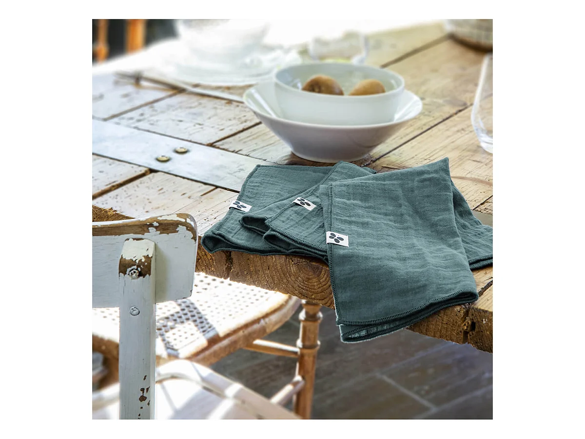 Lot 6 serviettes 40 x 40 cm en double gaze de coton bleu nuit - PEPA
