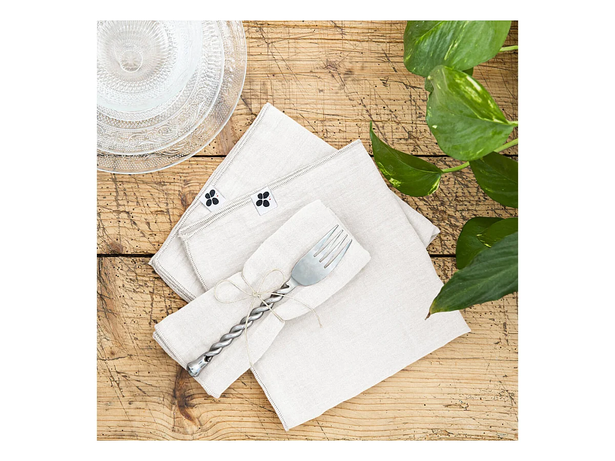 Lot de 4 serviettes de table en coton et lin blanc bourdon noir 45x45cm
