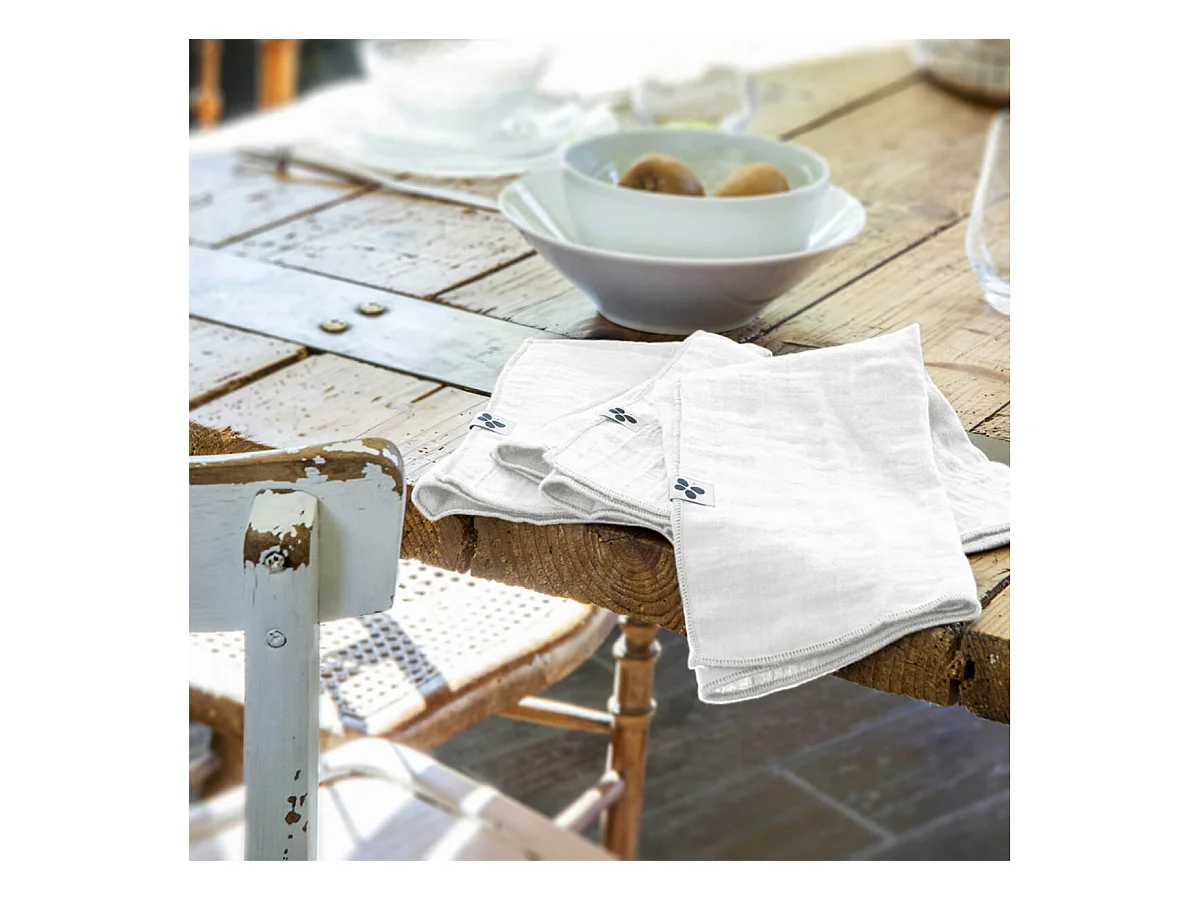 Lot de 6 serviettes 40 x 40 cm en double gaze de coton blanc - PEPA