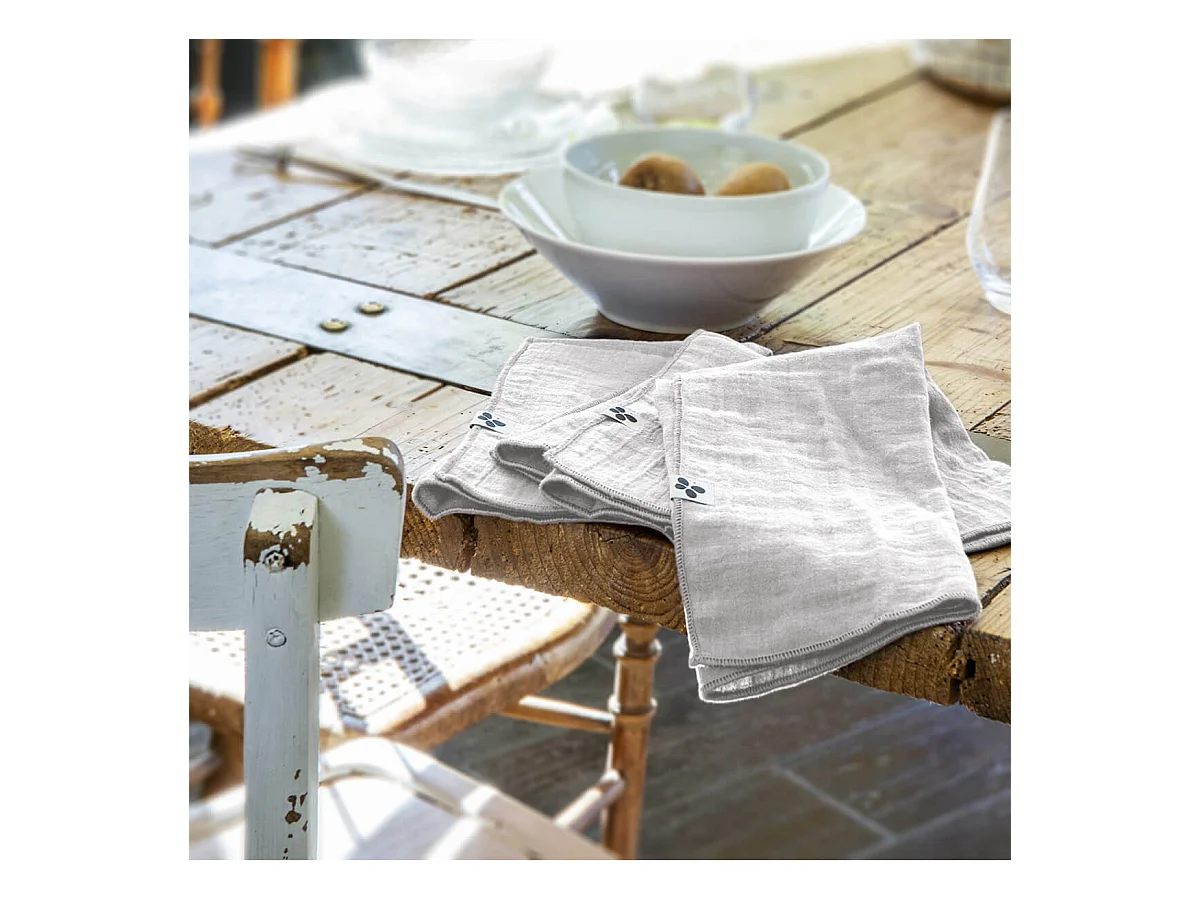 Lot de 6 serviettes 40 x 40 cm en double gaze de coton gris - PEPA