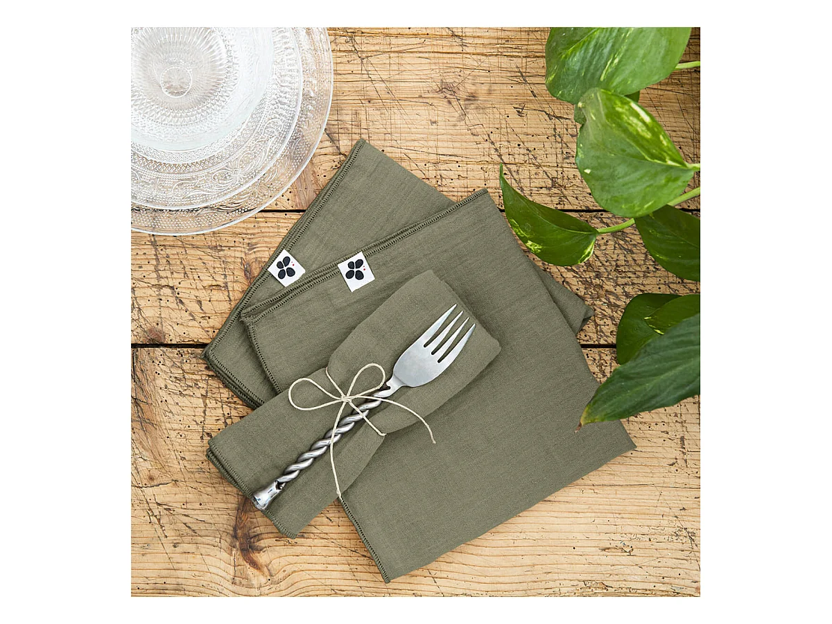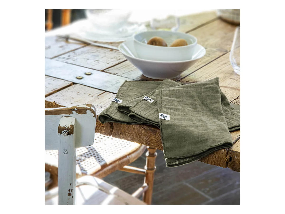 OUREA - Lot de 3 Serviettes 40x40cm Gaze de Coton Romarin