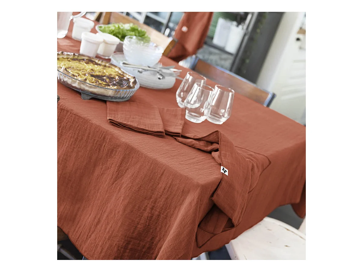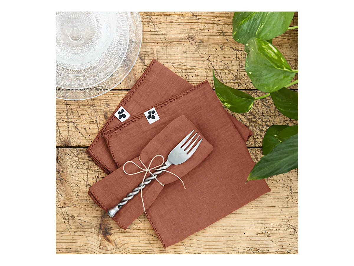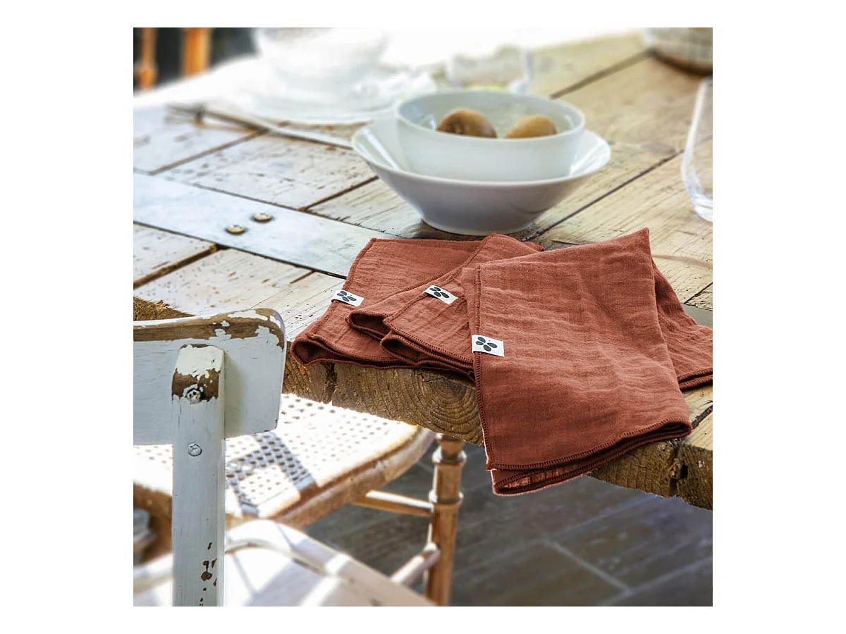 OUREA - Lot de 3 Serviettes 40x40cm Gaze de Coton Terracotta