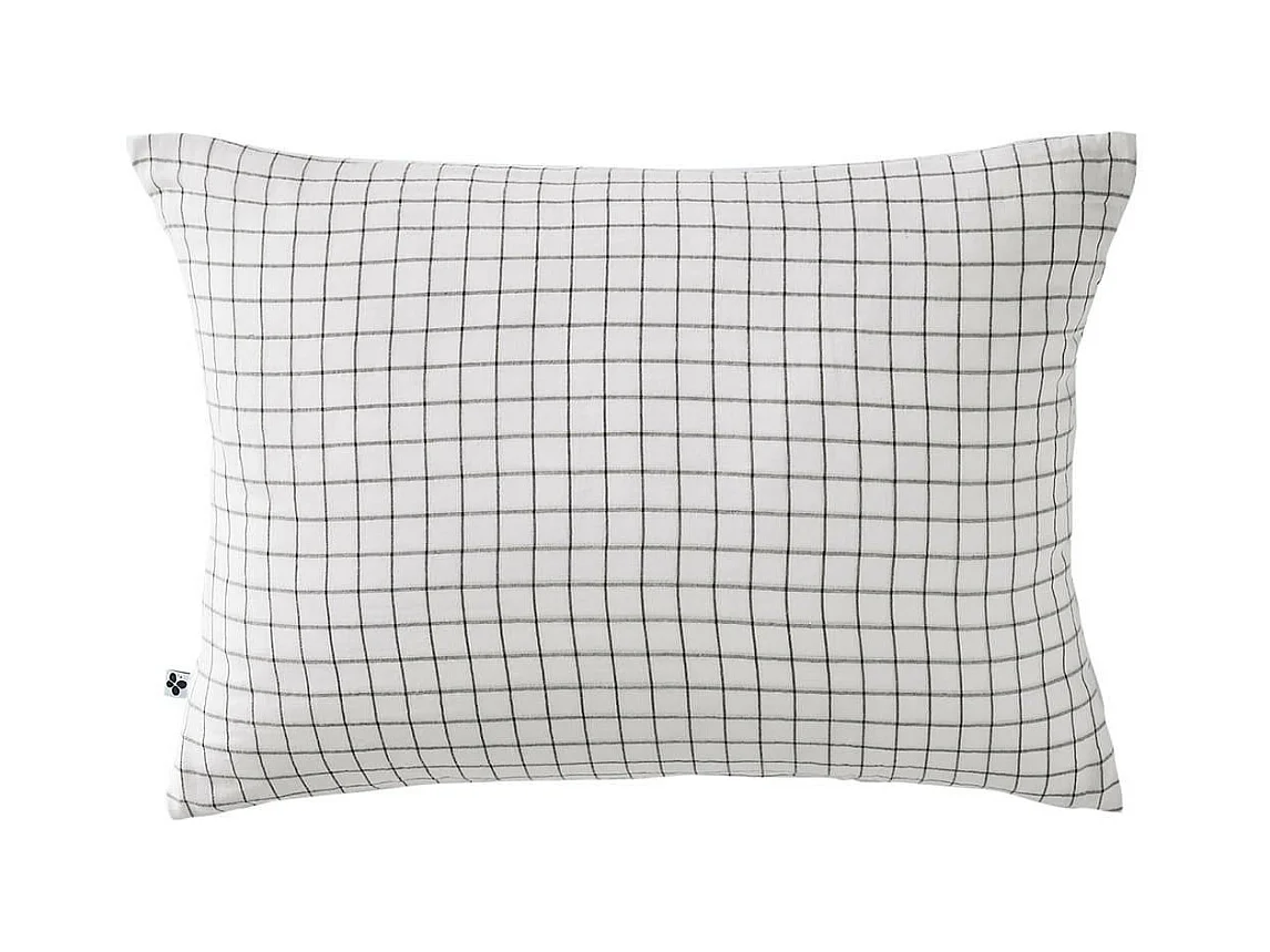 Taie d'oreiller à carreaux double gaze de coton blanc 50x70