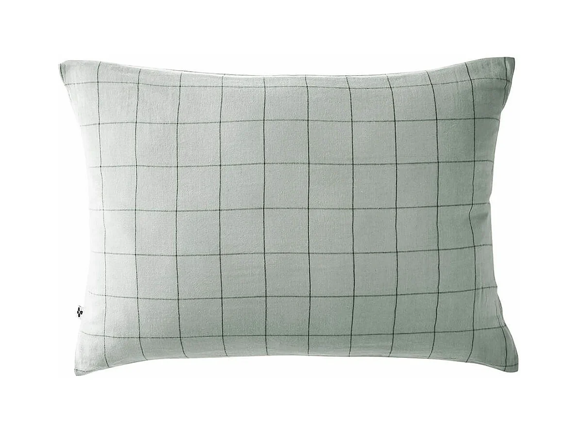 Taie d'oreiller 50x70 double gaze de coton grands carreaux vert d'eau Terre de Nuit