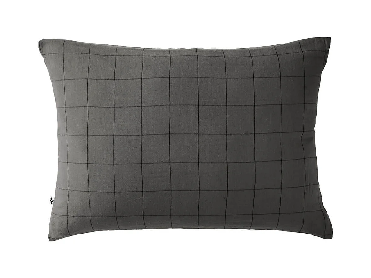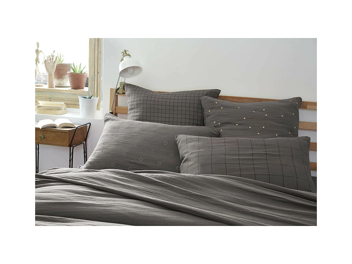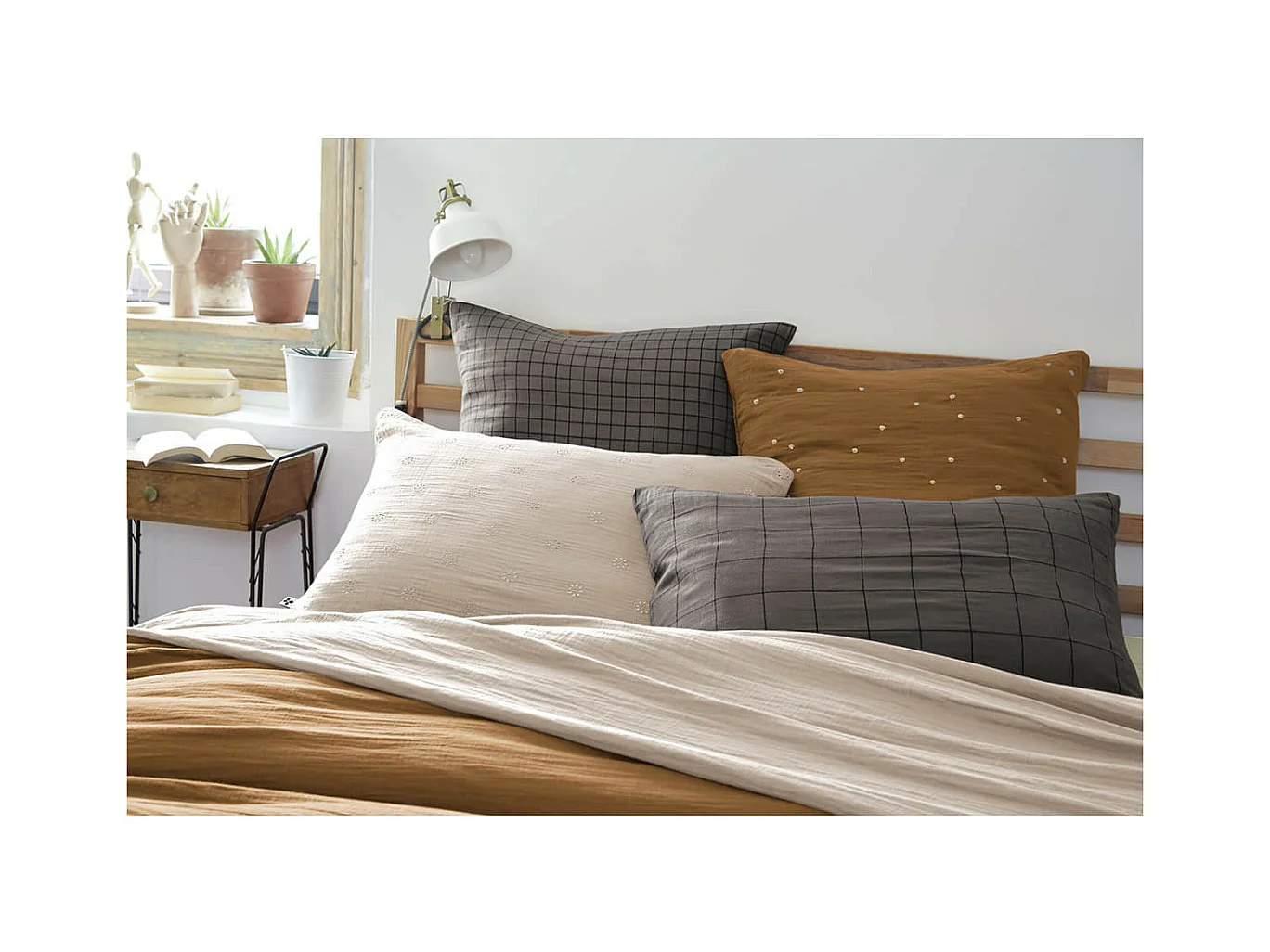 OUREA MOTIF - Taie d'Oreiller 50x70cm Gaze de Coton Granit à Grands Carreaux