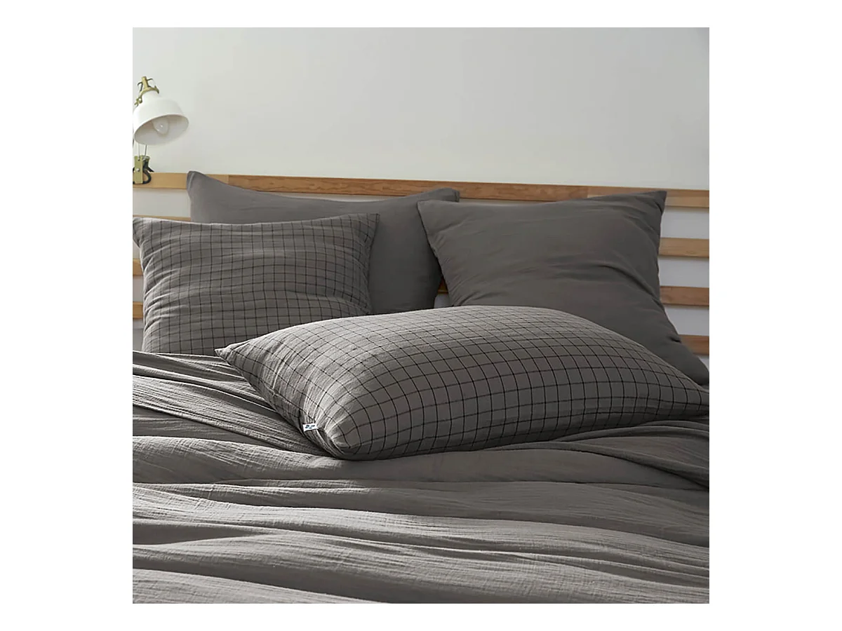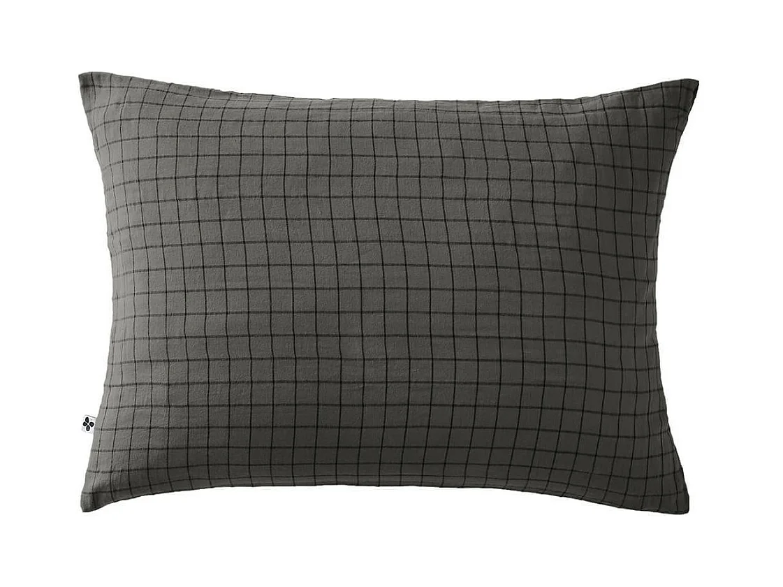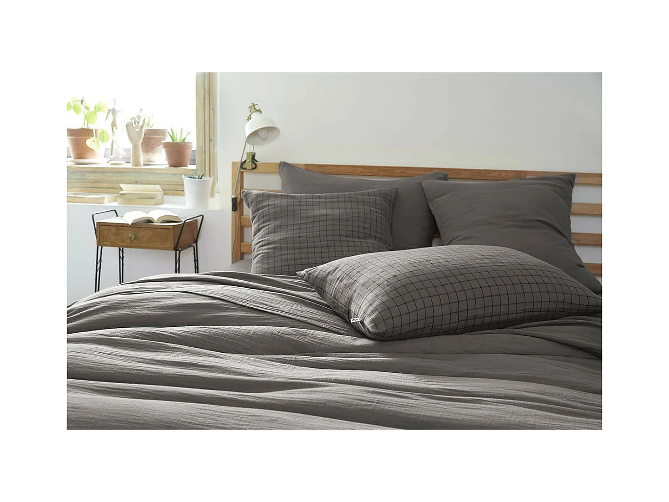 OUREA MOTIF - Taie d'Oreiller 50x70cm Gaze de Coton Granit à Petits Carreaux