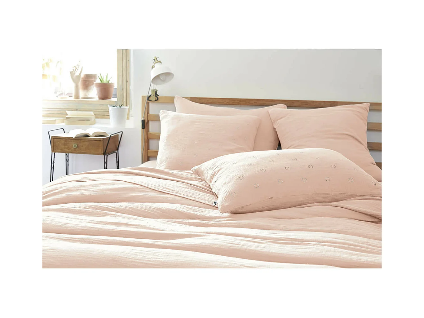 OUREA MOTIF - Taie d'Oreiller 50x70cm Gaze de Coton Guimauve à Fleurs Ajourées