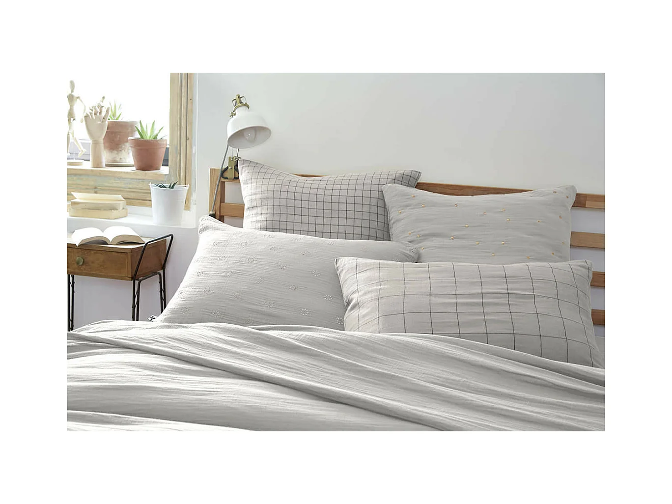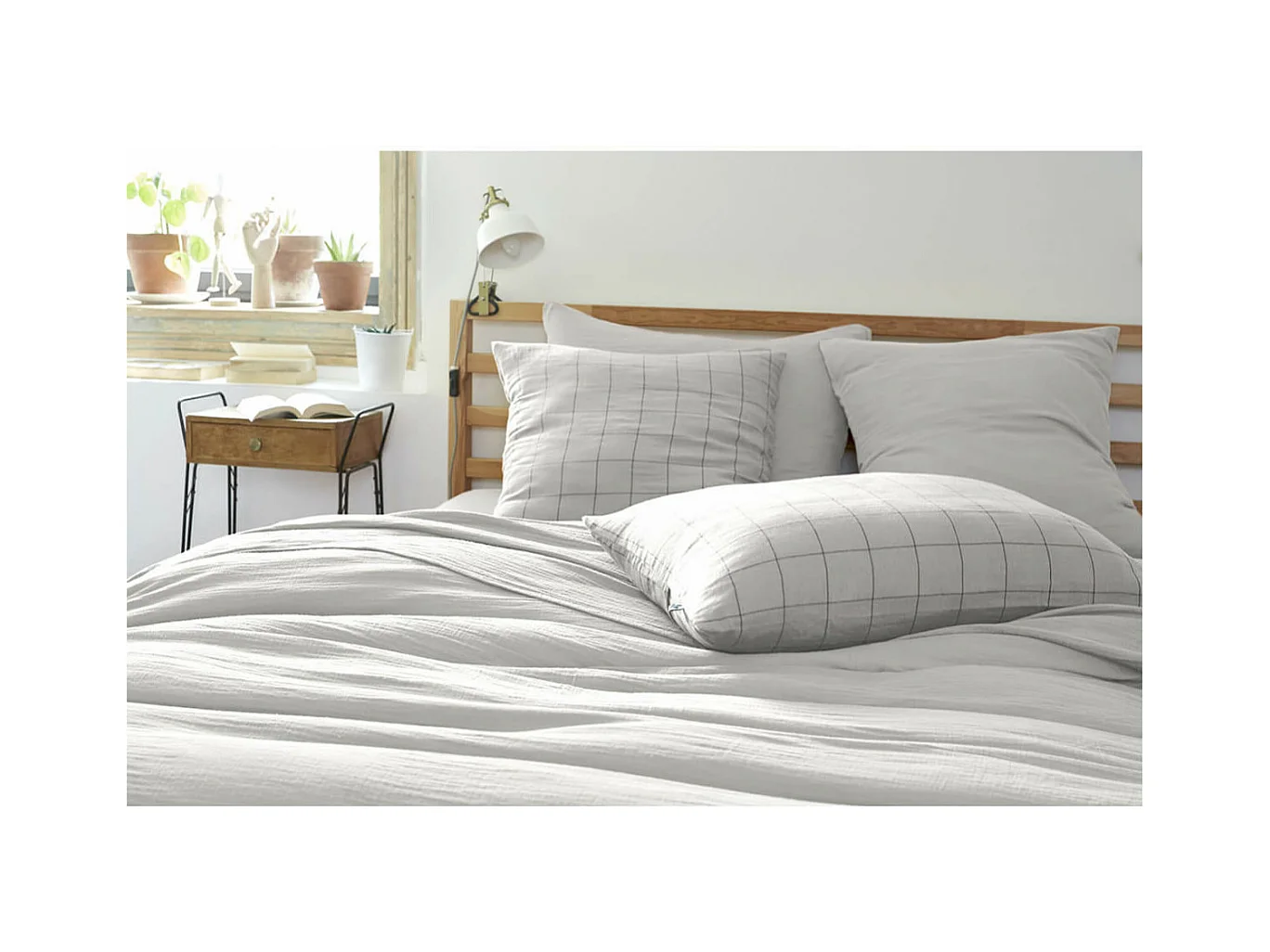 OUREA MOTIF - Taie d'Oreiller 50x70cm Gaze de Coton Nuage à Grands Carreaux