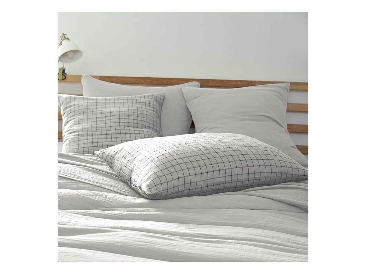 OUREA MOTIF - Taie d'Oreiller 50x70cm Gaze de Coton Nuage à Petits Carreaux