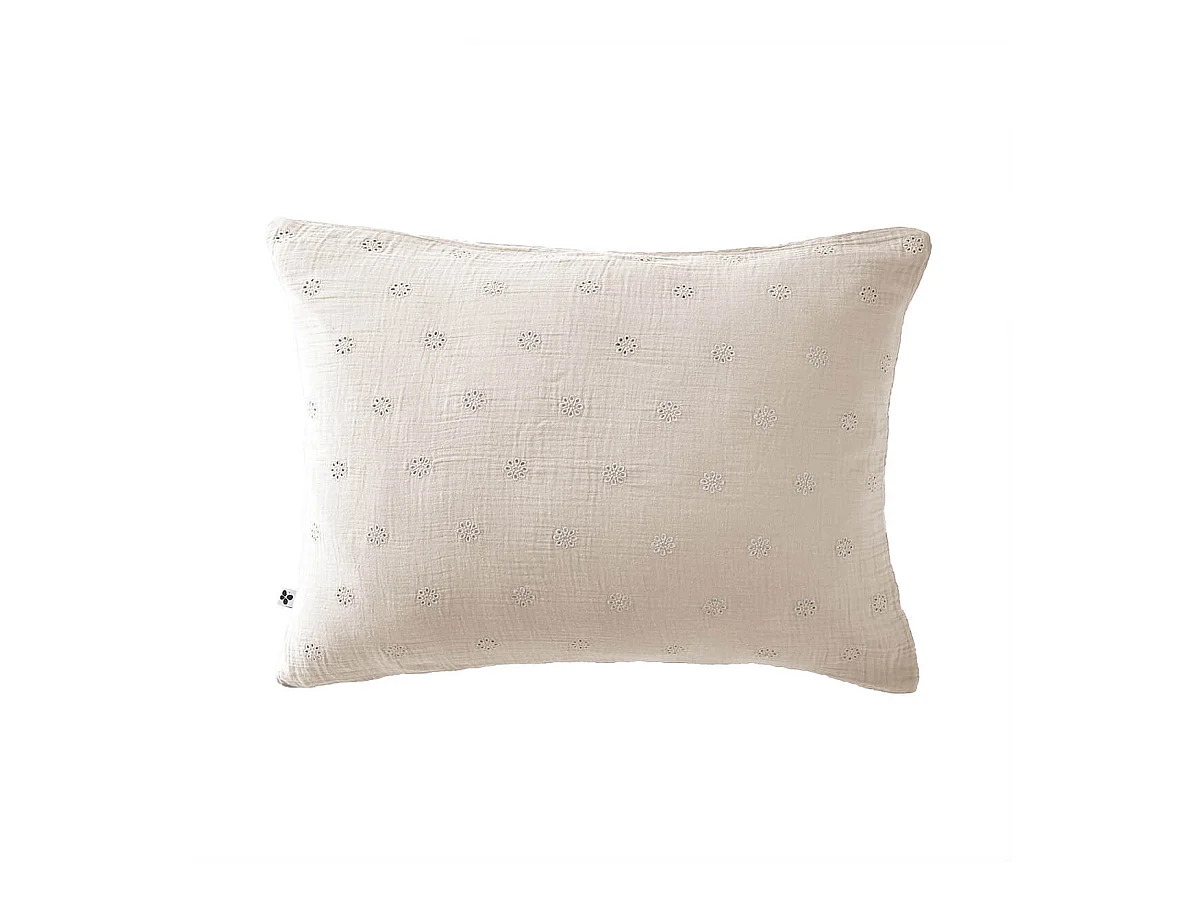 OUREA MOTIF - Taie d'Oreiller 50x70cm Gaze de Coton Pampa à Fleurs Ajourées