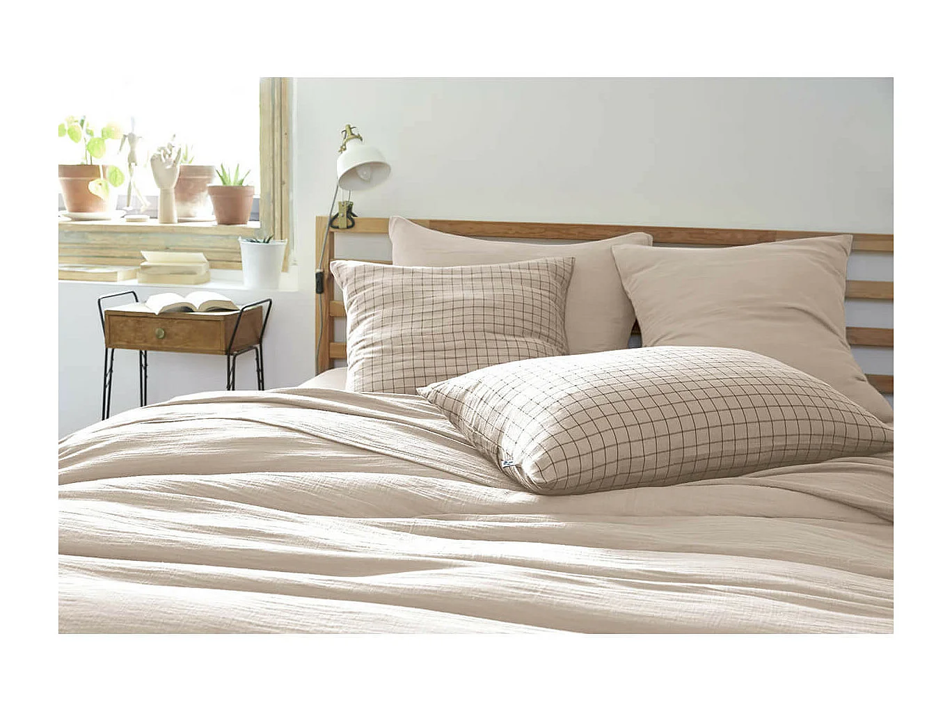 Taie d'oreiller gaze de coton imprimé vichy 50x70 Naturel