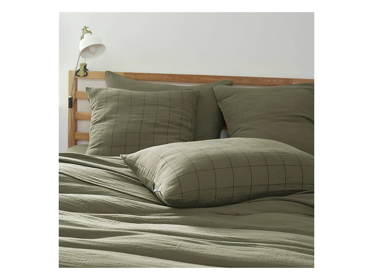 Parure de lit Housse de couette 2 personne + 2 taies d'oreiller en gaze de coton 240 x 260 cm coloris kaki
