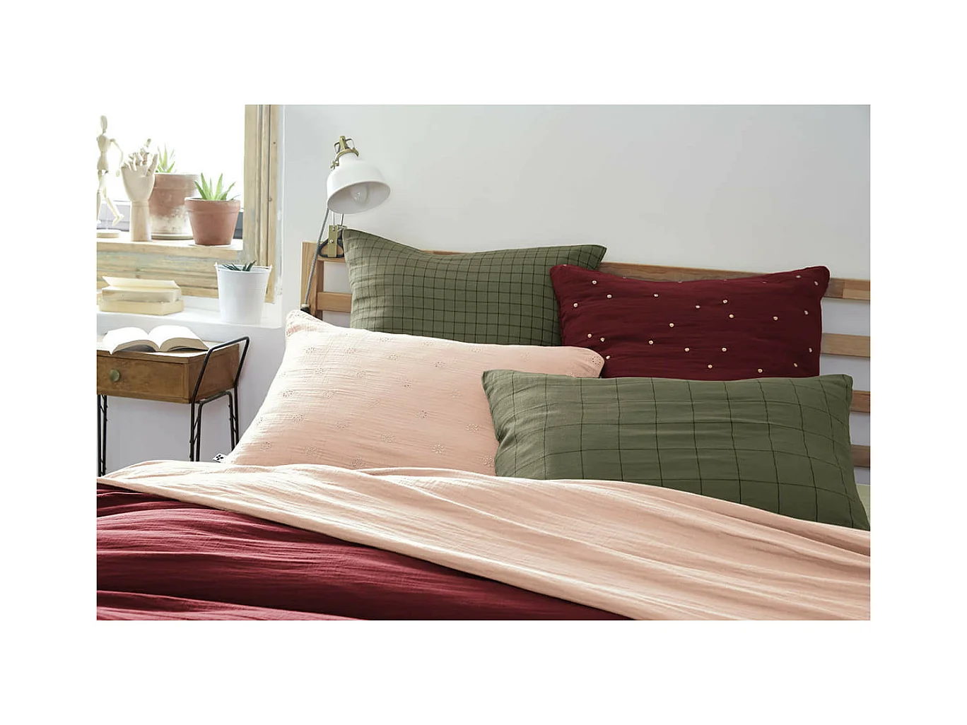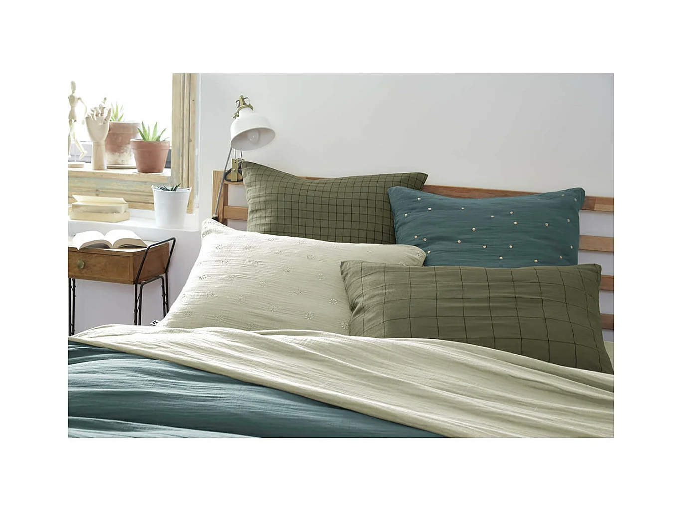 OUREA MOTIF - Taie d'Oreiller 50x70cm Gaze de Coton Romarin à Grands Carreaux