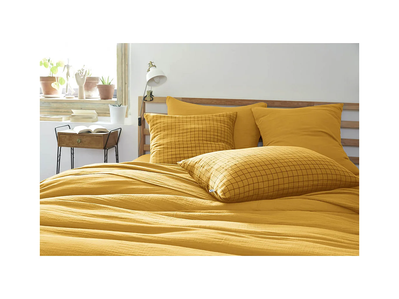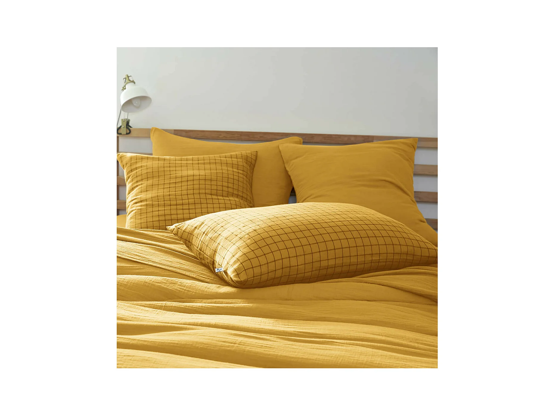 OUREA MOTIF - Taie d'Oreiller 50x70cm Gaze de Coton Safran à Petits Carreaux