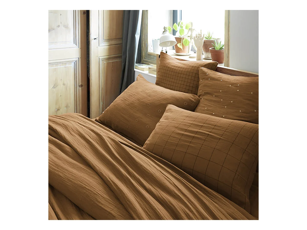 Parure de lit 3 pièces 240x220 cm et 65x65 cm mousseline de coton MILOS marron terre cuite