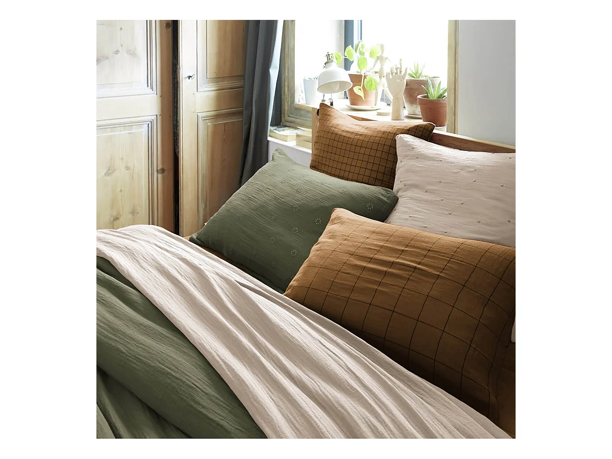 Taie d'oreiller Tissé-teint grands carreaux Déco "Gaïa Match" 60 x 60 cm & 50 x 70 cm "Gaze de Coton"