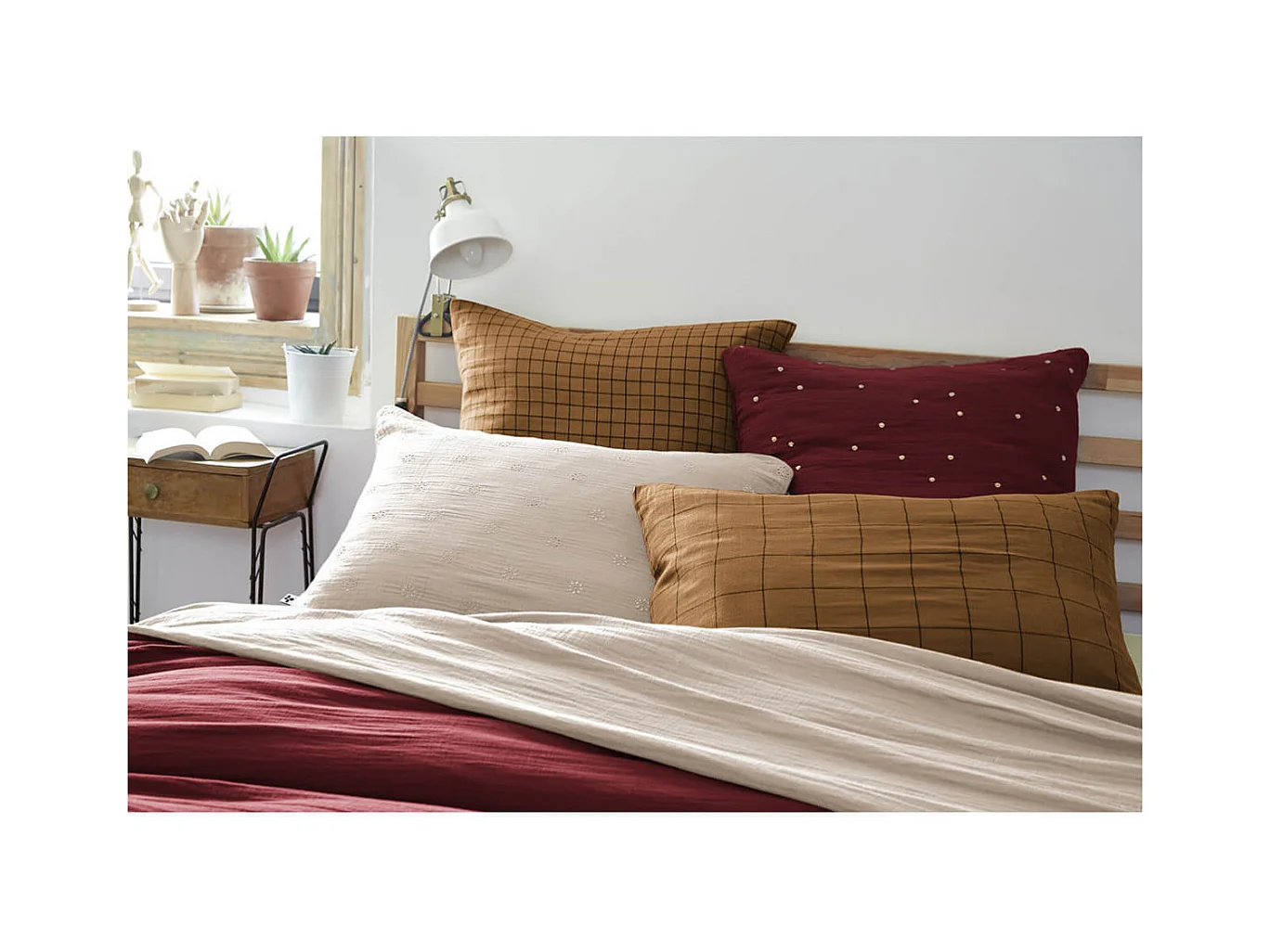 Taie d'oreiller Tissé-teint petits carreaux Déco "Gaïa Mix" 60 x 60 cm & 50 x 70 cm "Gaze de Coton"