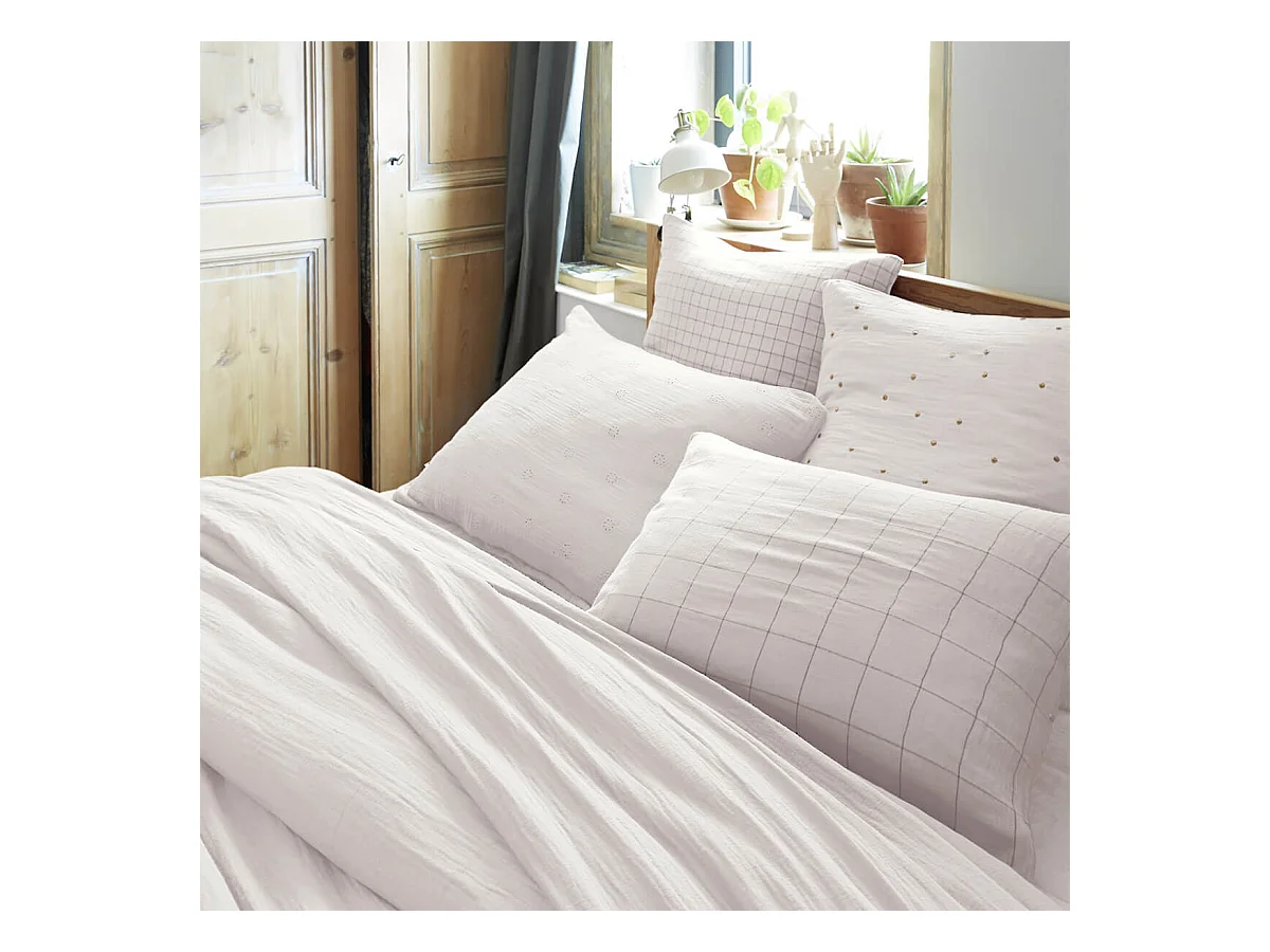 OUREA MOTIF - Taie d'Oreiller 60x60cm Gaze de Coton Chantilly à Petits Carreaux
