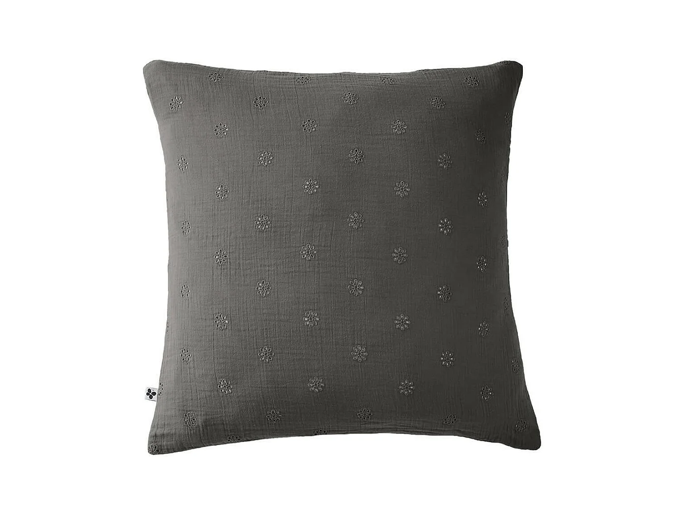 OUREA MOTIF - Taie d'Oreiller 60x60cm Gaze de Coton Granit à Fleurs Ajourées