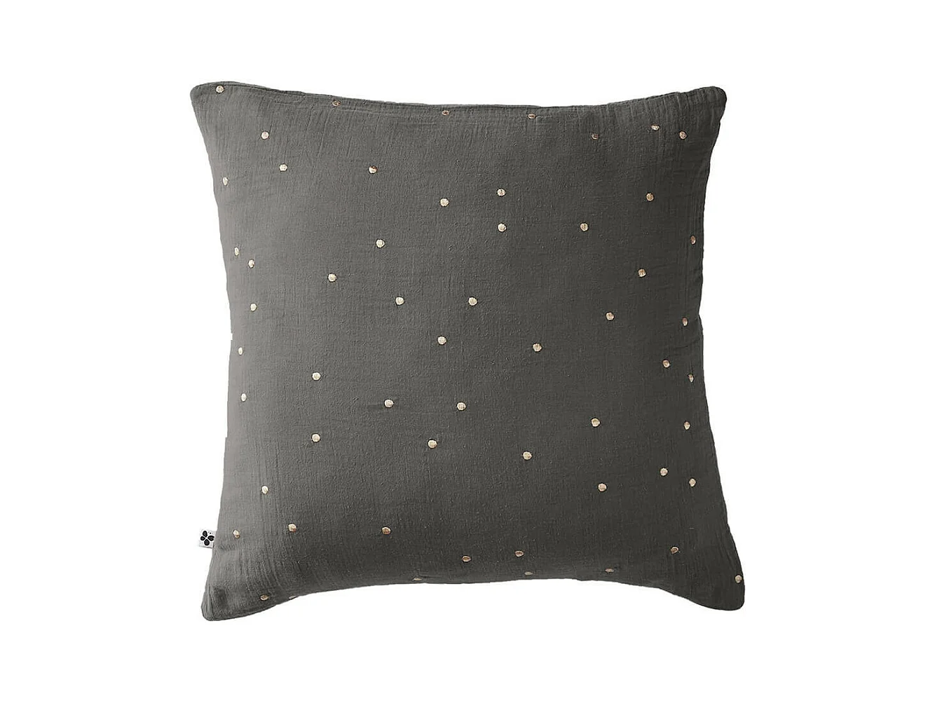 OUREA MOTIF - Taie d'Oreiller 60x60cm Gaze de Coton Granit à Pois Dorés