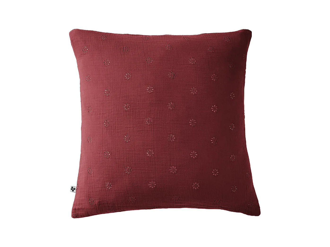 OUREA MOTIF - Taie d'Oreiller 60x60cm Gaze de Coton Lie de Vin à Fleurs Ajourées