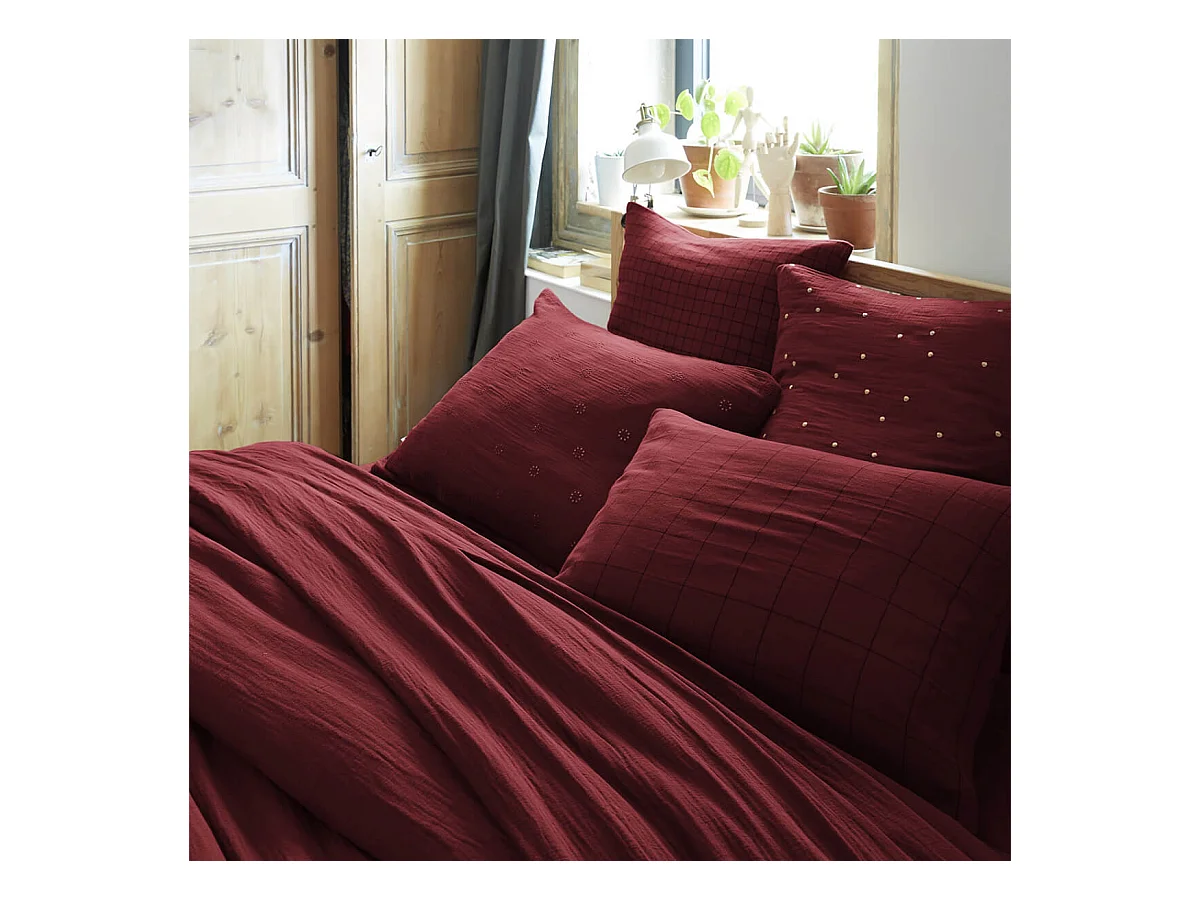 Taie d'oreiller Tissé-teint petits carreaux Déco "Gaïa Mix" 60 x 60 cm & 50 x 70 cm "Gaze de Coton"