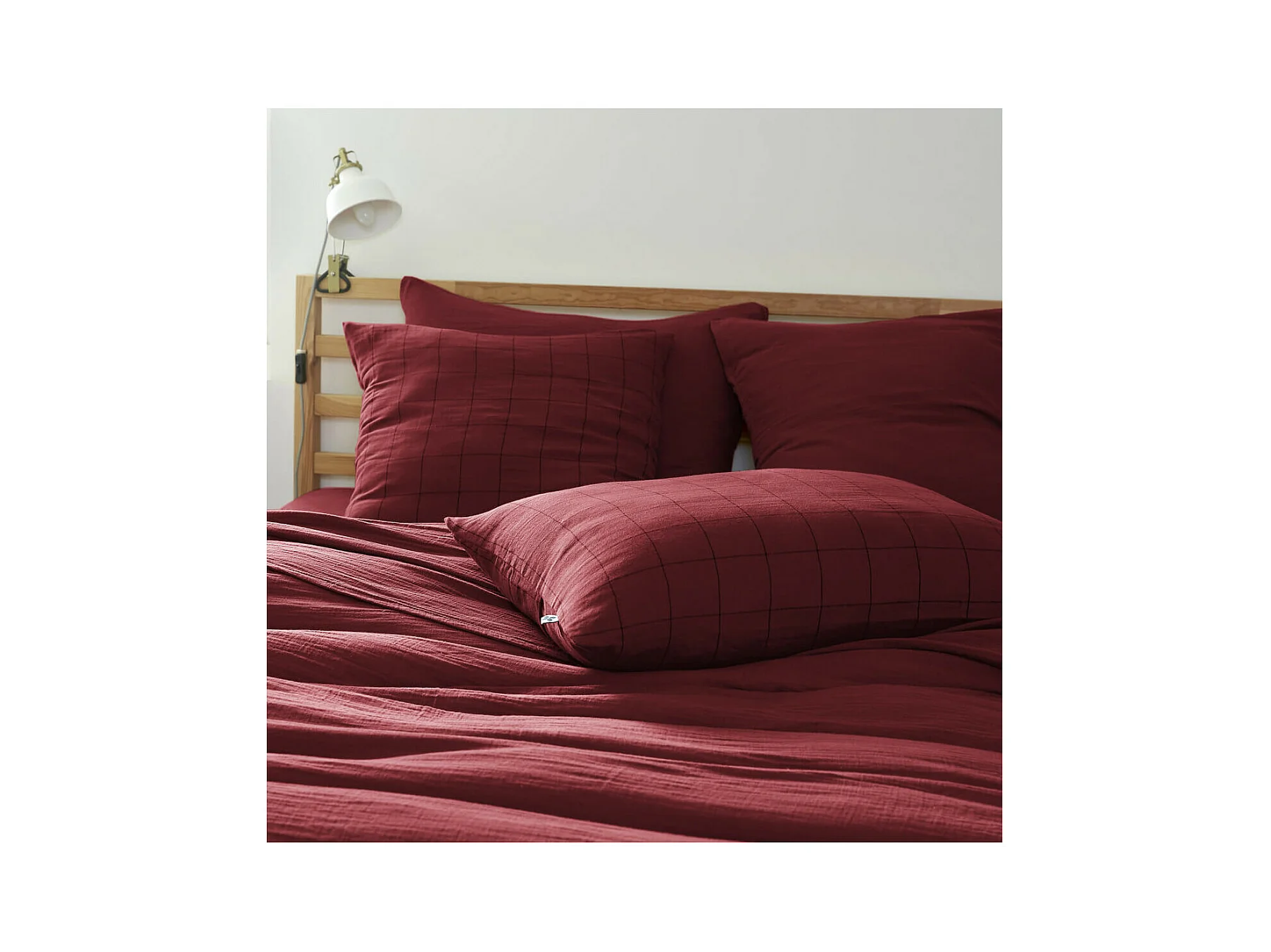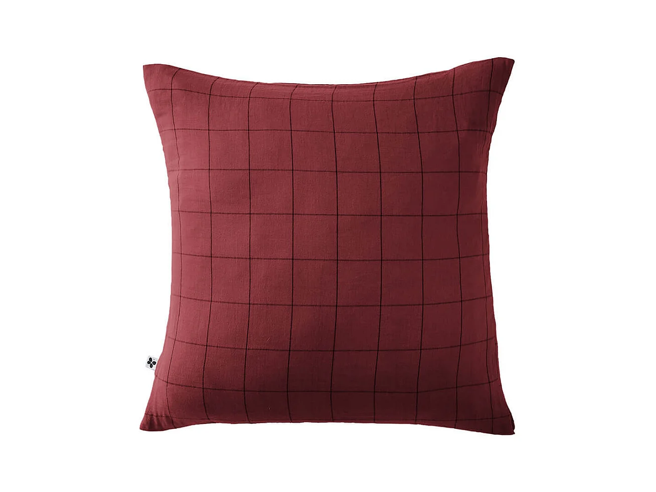 OUREA MOTIF - Taie d'Oreiller 60x60cm Gaze de Coton Lie de Vin à Grands Carreaux