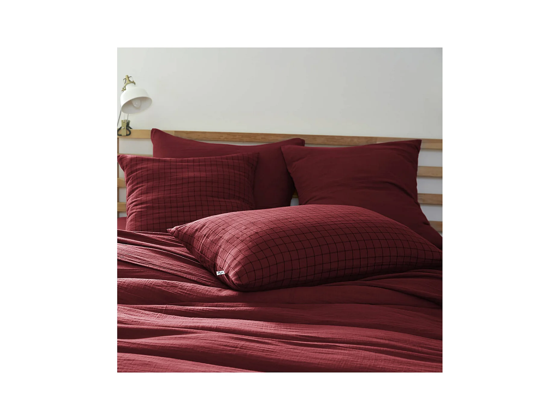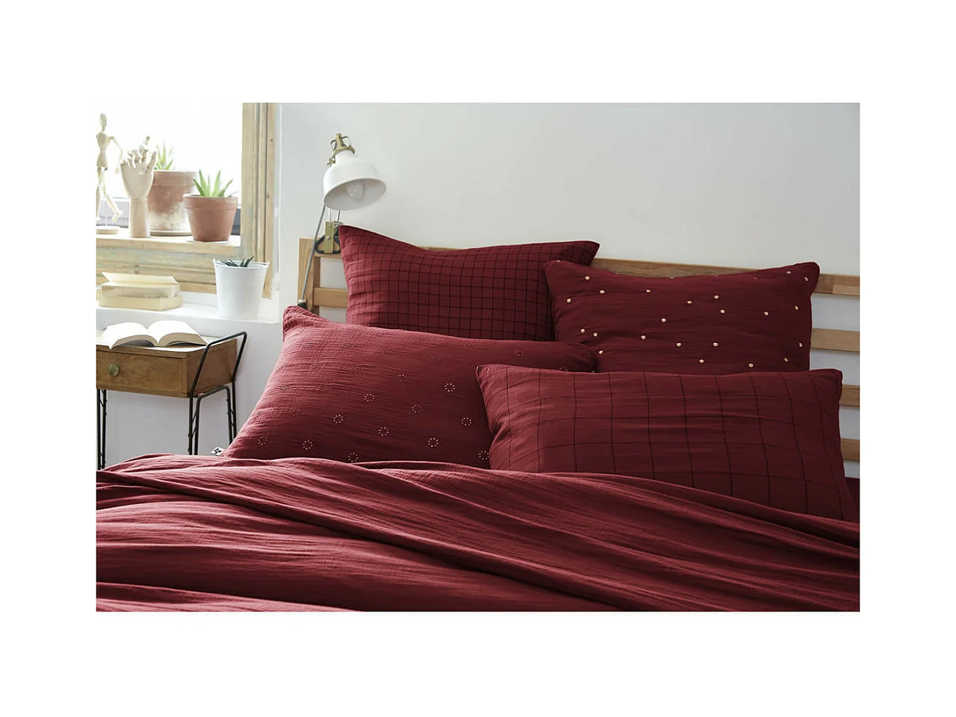 OUREA MOTIF - Taie d'Oreiller 60x60cm Gaze de Coton Lie de Vin à Petits Carreaux
