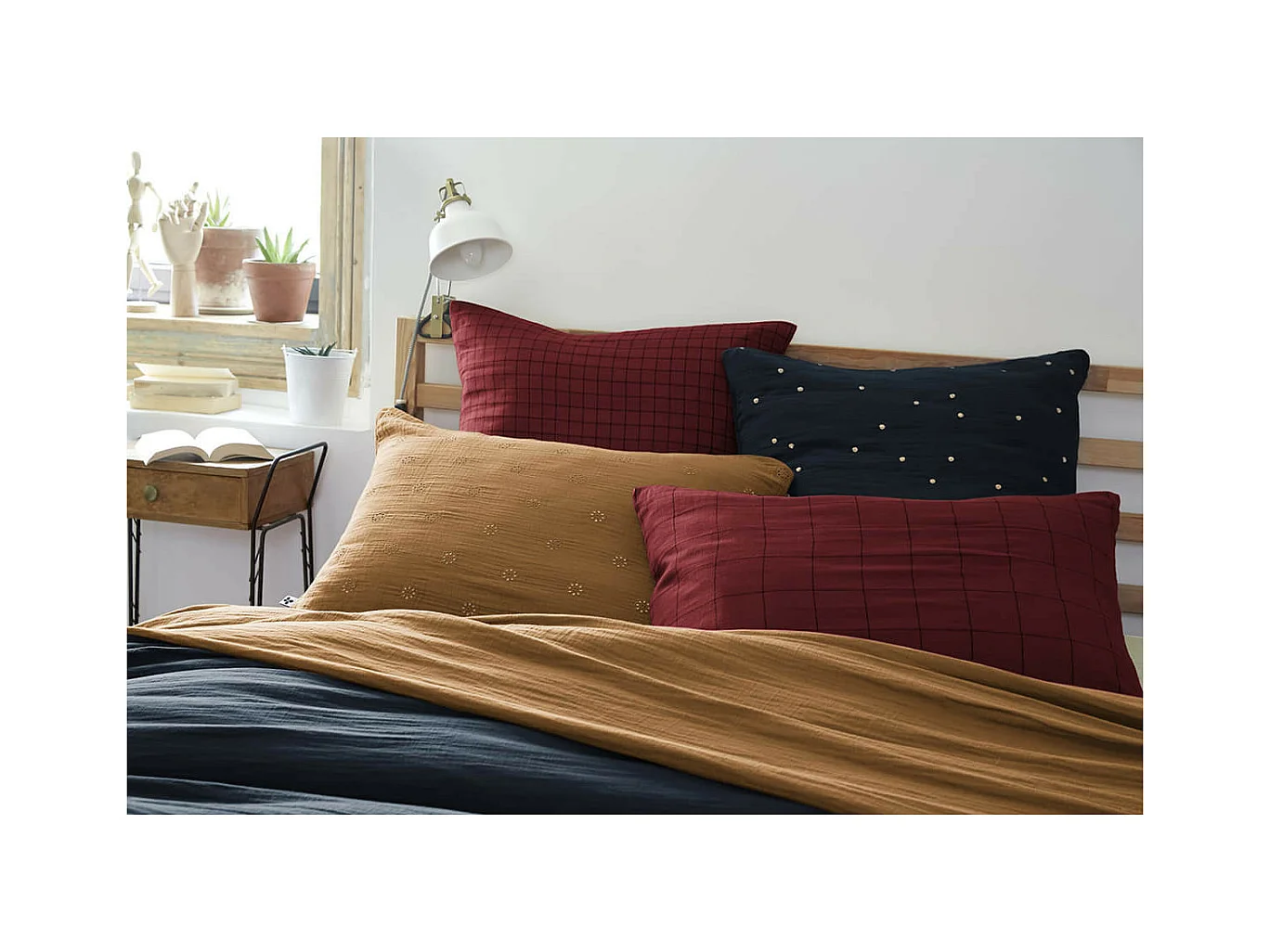 Taie d'oreiller Tissé-teint petits carreaux Déco "Gaïa Mix" 60 x 60 cm & 50 x 70 cm "Gaze de Coton"