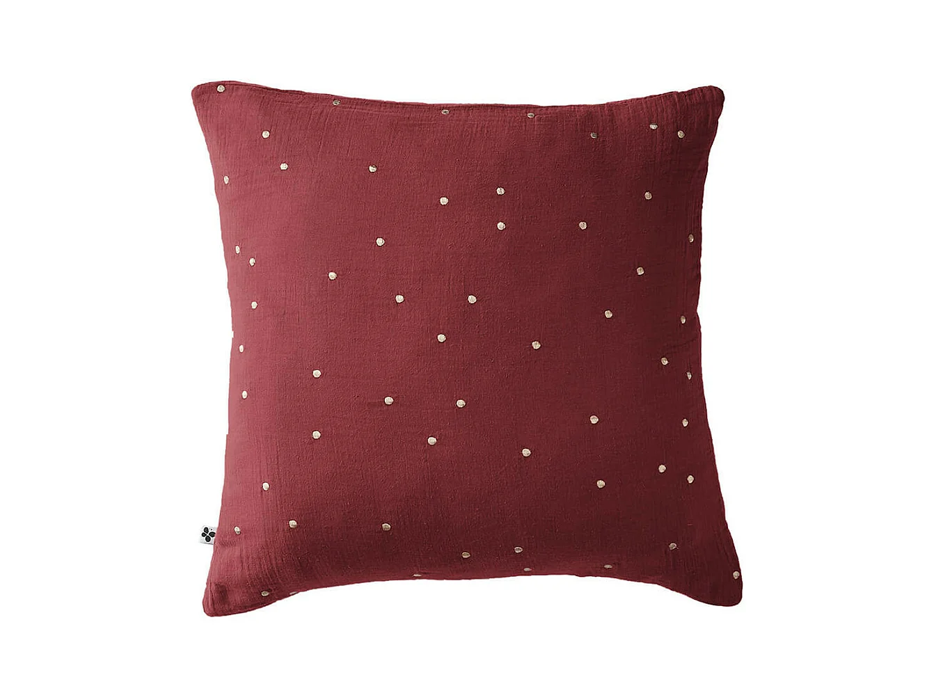Taie d'oreiller à pois brodés double gaze de coton bordeaux 60x60 cm