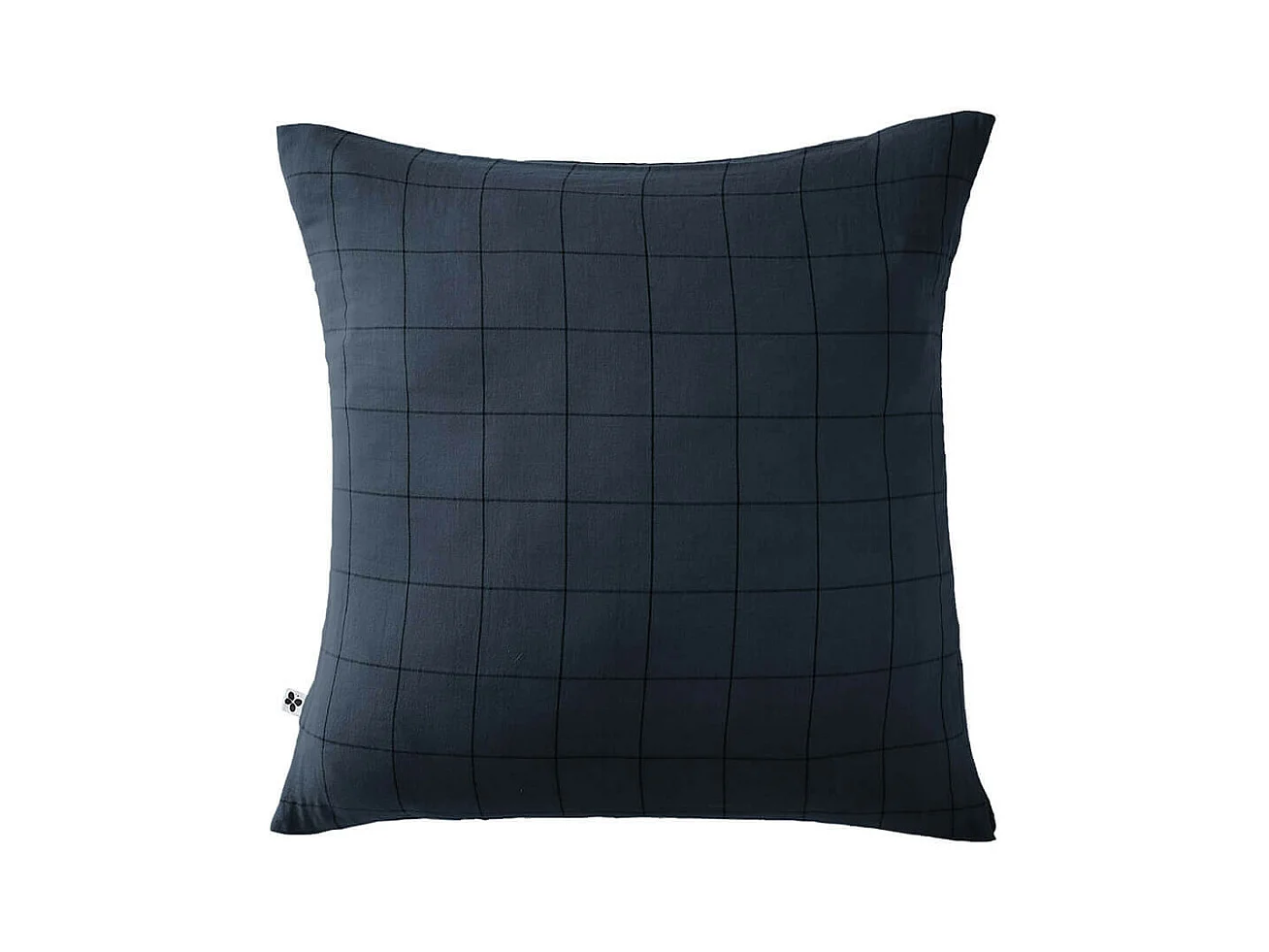 OUREA MOTIF - Taie d'Oreiller 60x60cm Gaze de Coton Minuit à Grands Carreaux