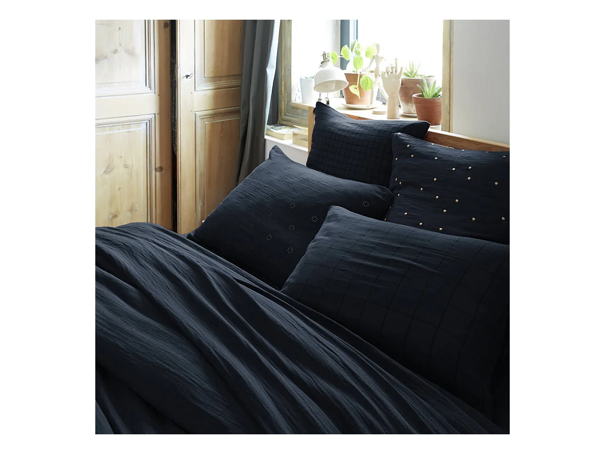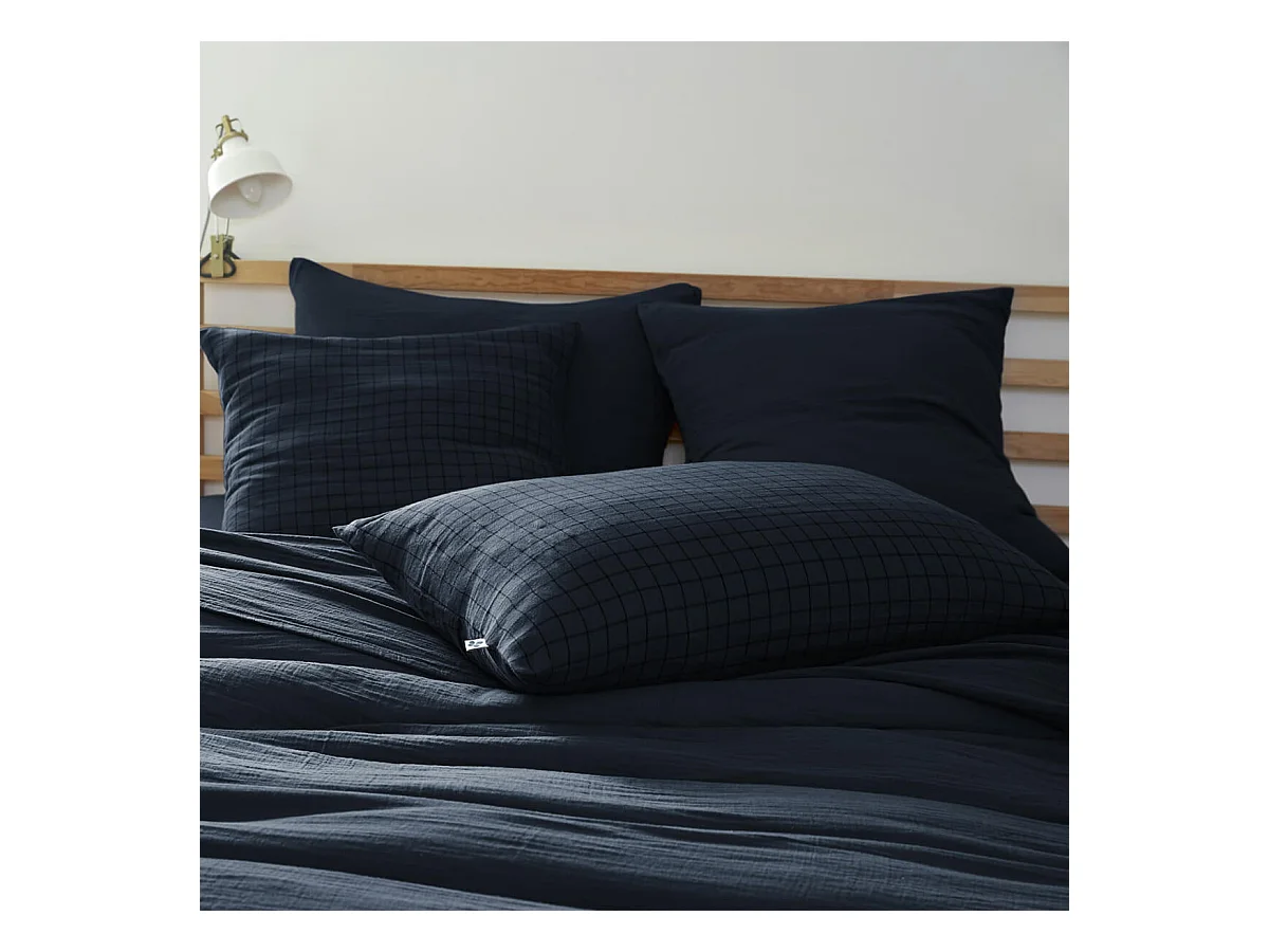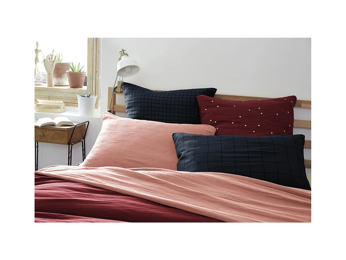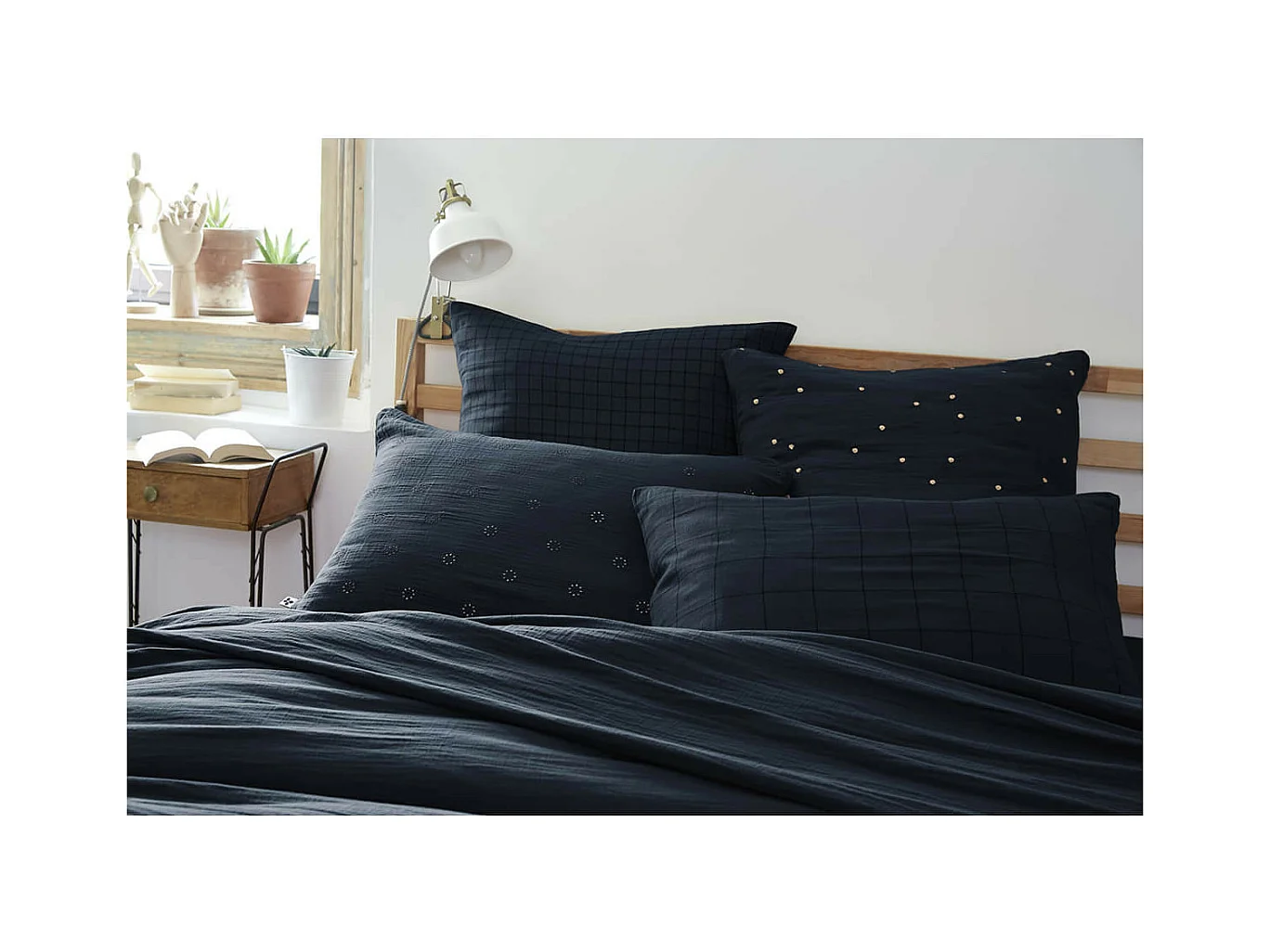 OUREA MOTIF - Taie d'Oreiller 60x60cm Gaze de Coton Minuit à Petits Carreaux