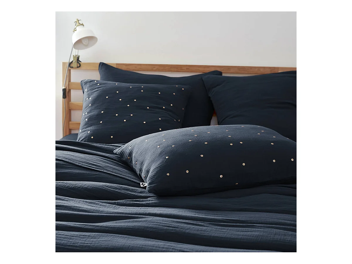 OUREA MOTIF - Taie d'Oreiller 60x60cm Gaze de Coton Minuit à Pois Dorés
